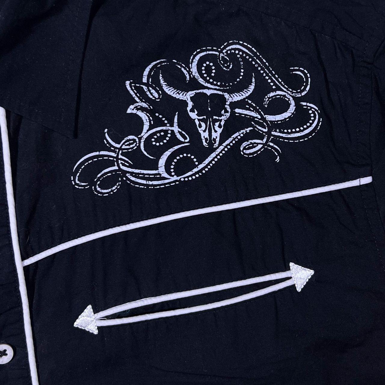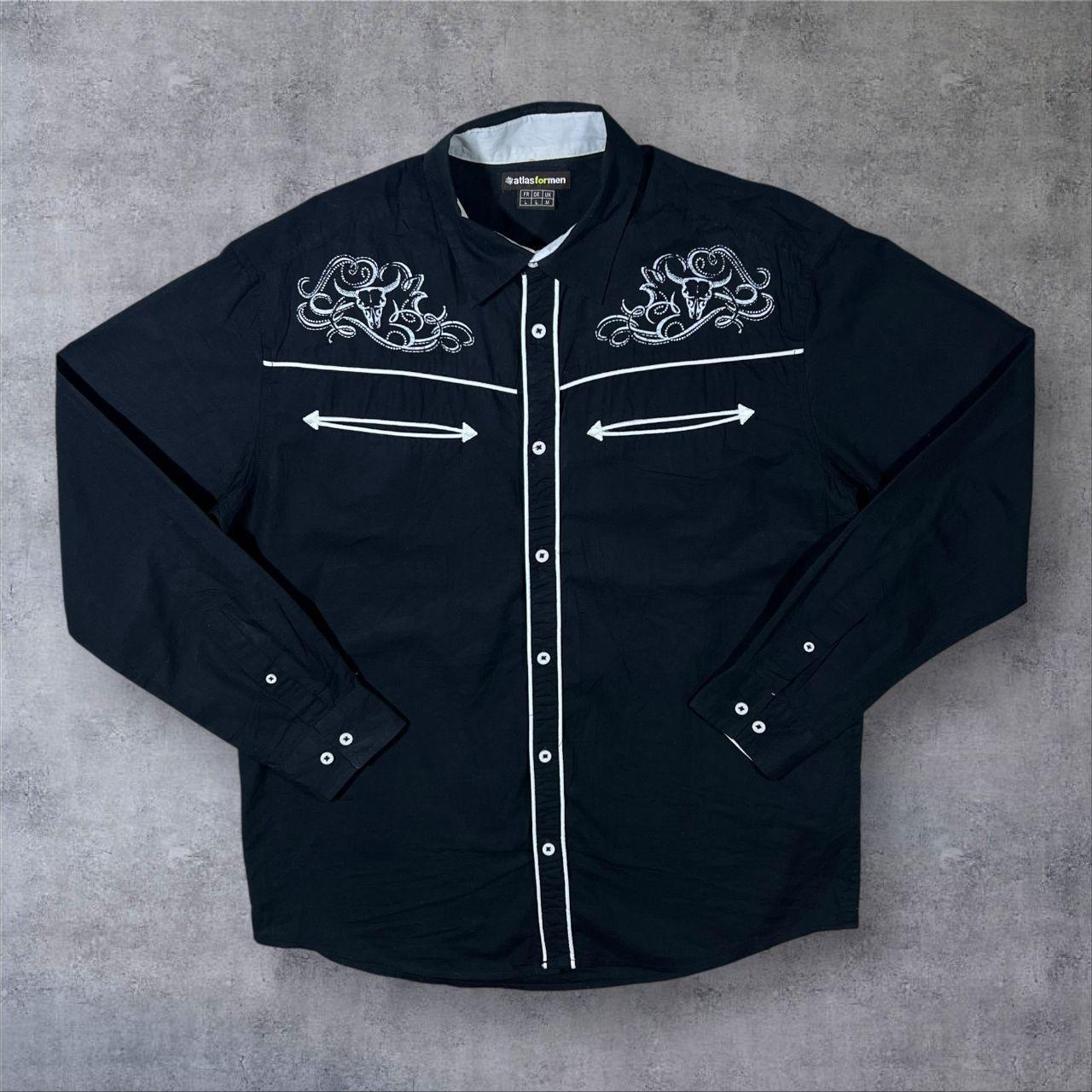 Atlas For Men Cowboy Western Cowskull Black Cotton Long Sleeve Shirt