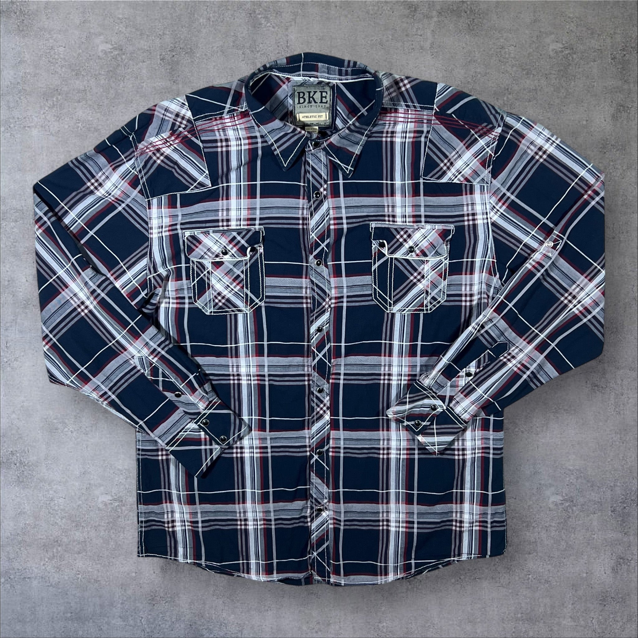 BKE "Athletic Fit" Multi Check Cowboy Western Popper Long Sleeve Shirt