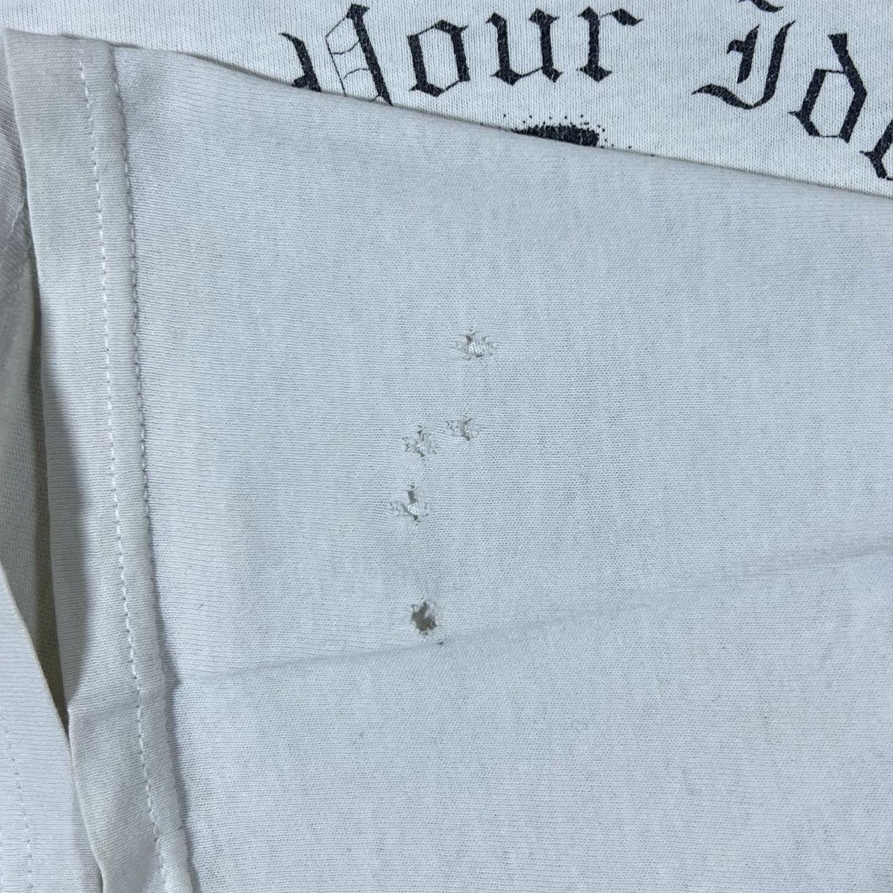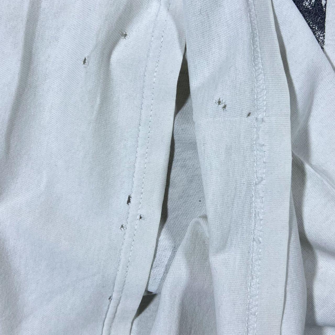 Condition: Numerous holes, light stains and signs of wear with some stains/unstitching to pit area. Yellowing to pits. Needs some TLC.