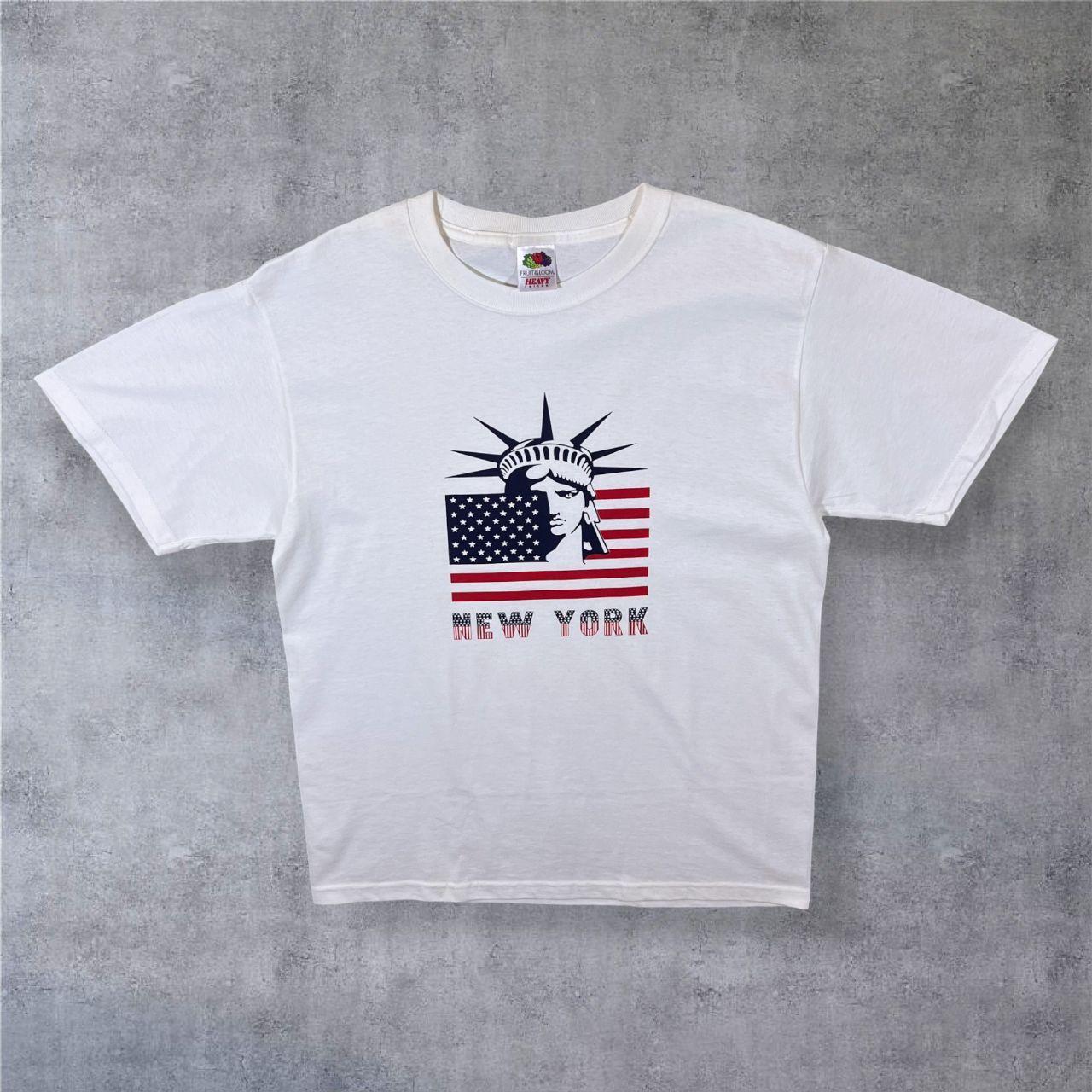 Early 00’s New York Statue Of Liberty USA Flag Souvenir Graphic White T-Shirt