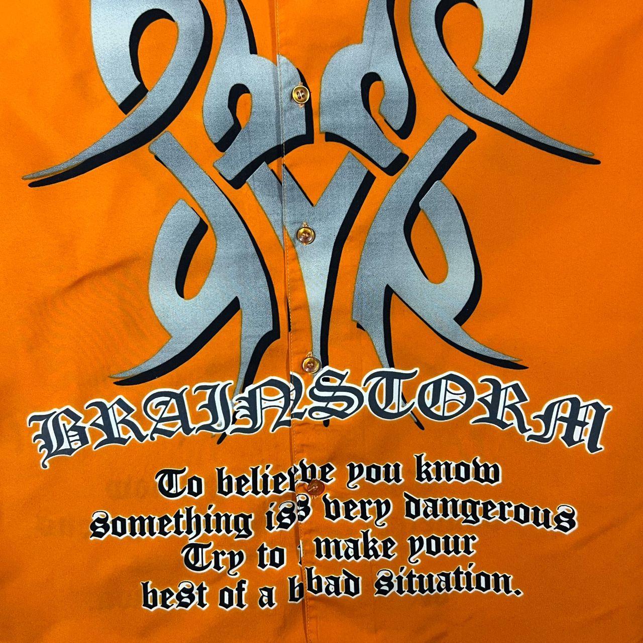 Early 00's Dognose "Brainstorm" Goth Y2K Tribal Orange Polyester Shirt