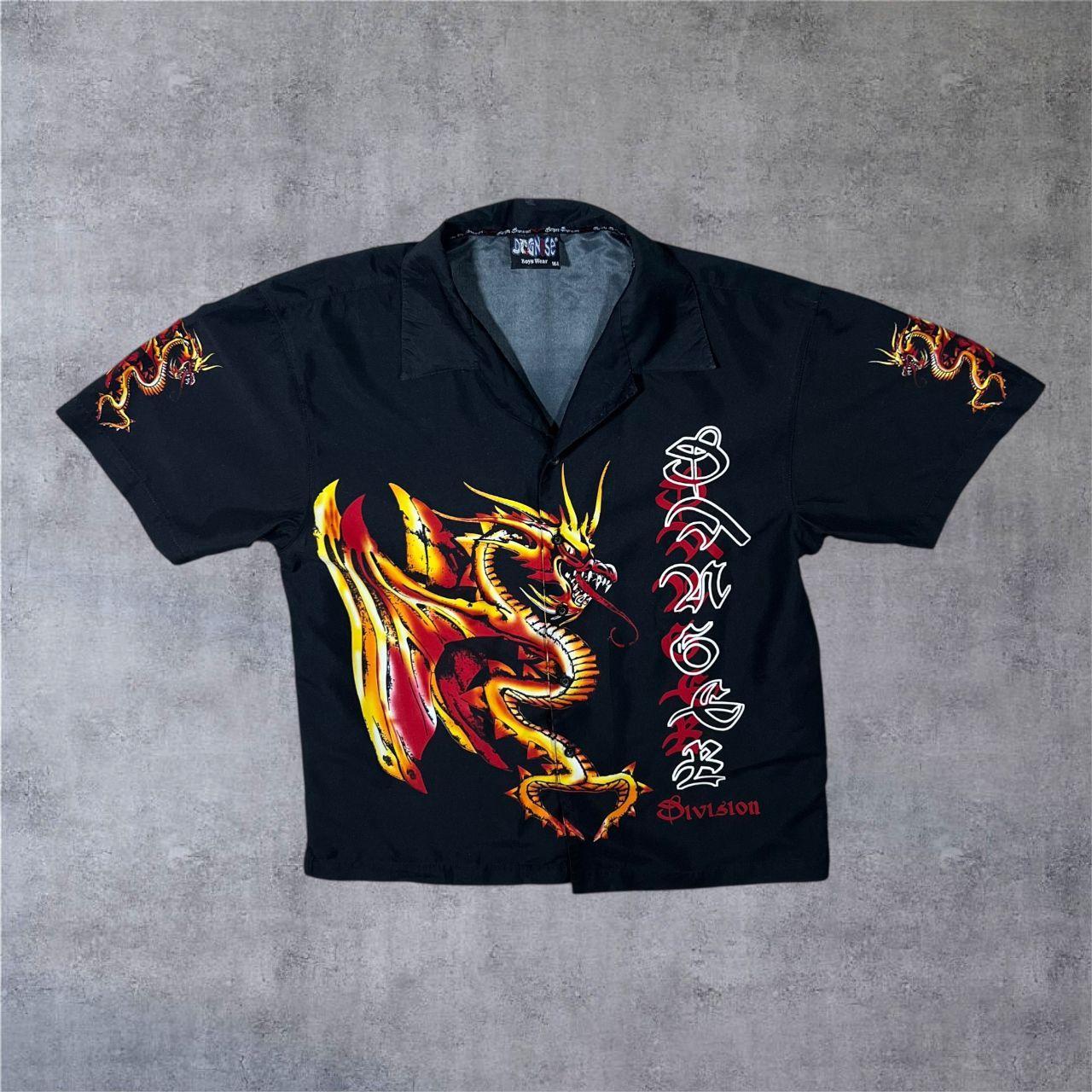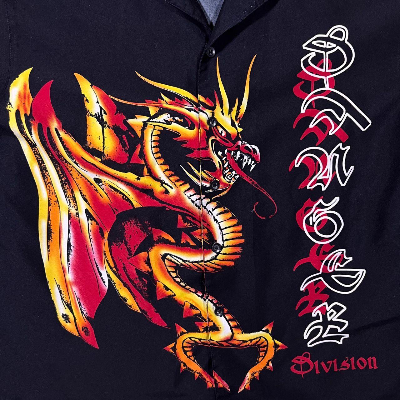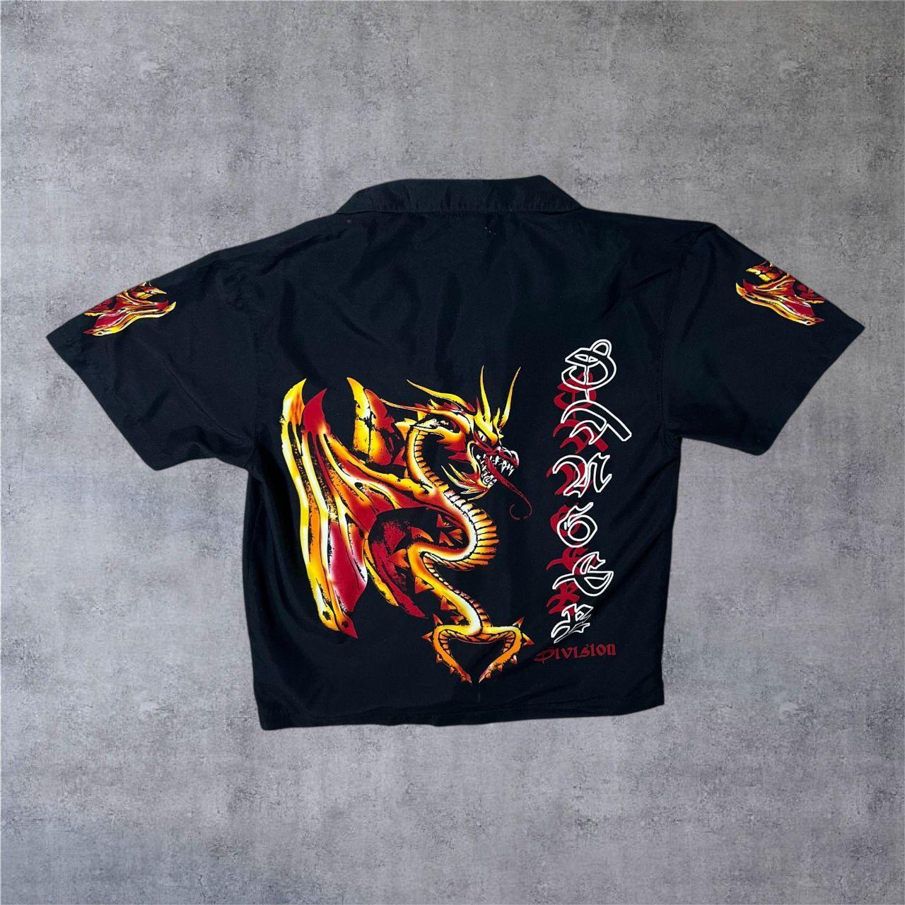 Early 00's Dognose "Danger Division" Goth Y2K Dragon Graphic Black Polyester Shirt