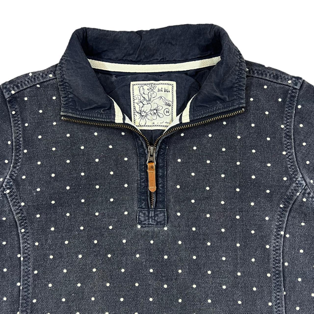 FAT FACE Classic Polka Dot Patterned 1/4 Zip Pullover Sweatshirt