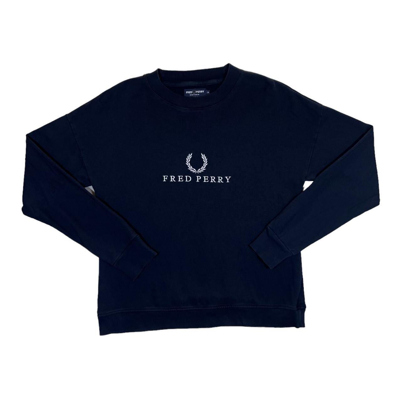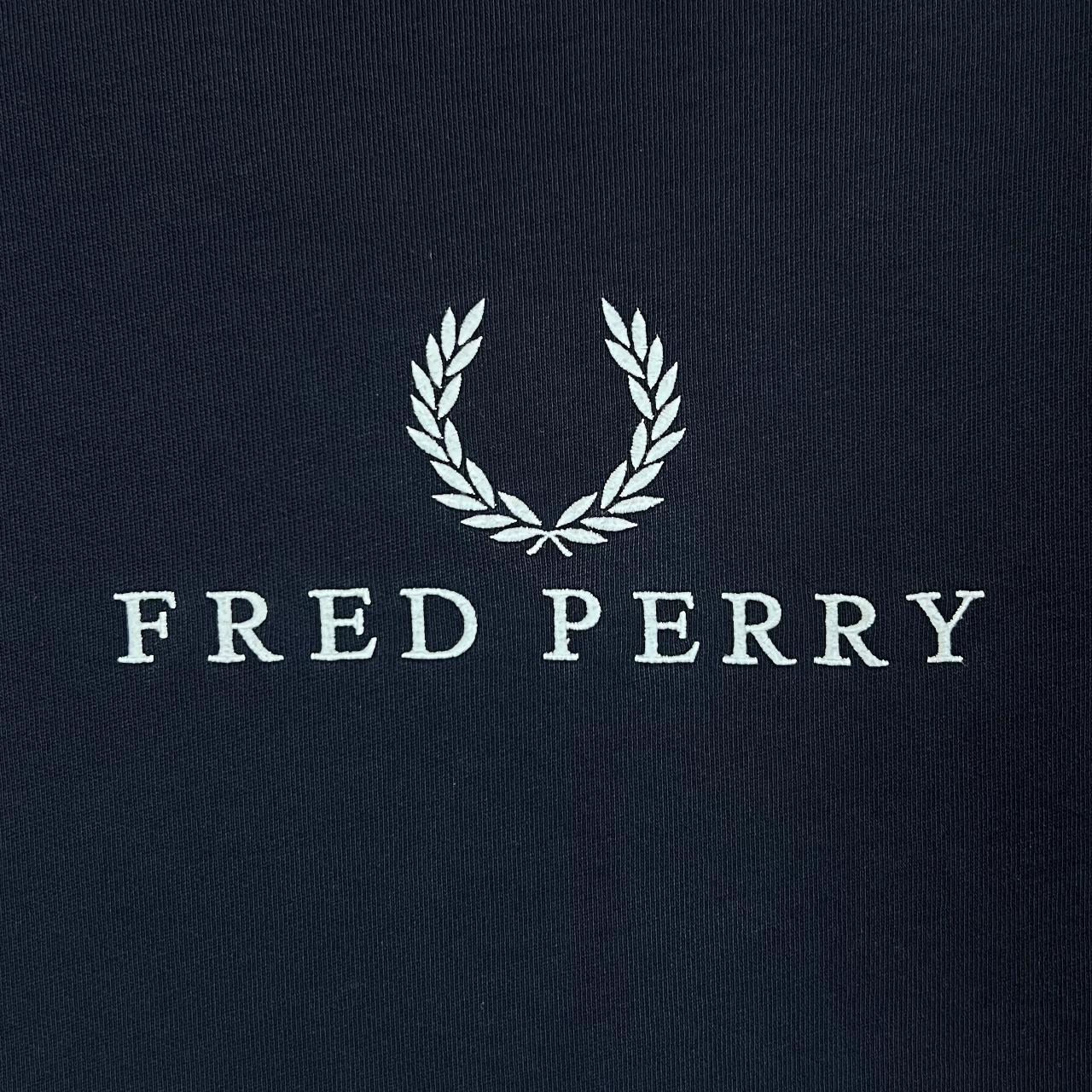FRED PERRY Classic Embroidered Big Logo Spellout Black Crewneck Sweatshirt