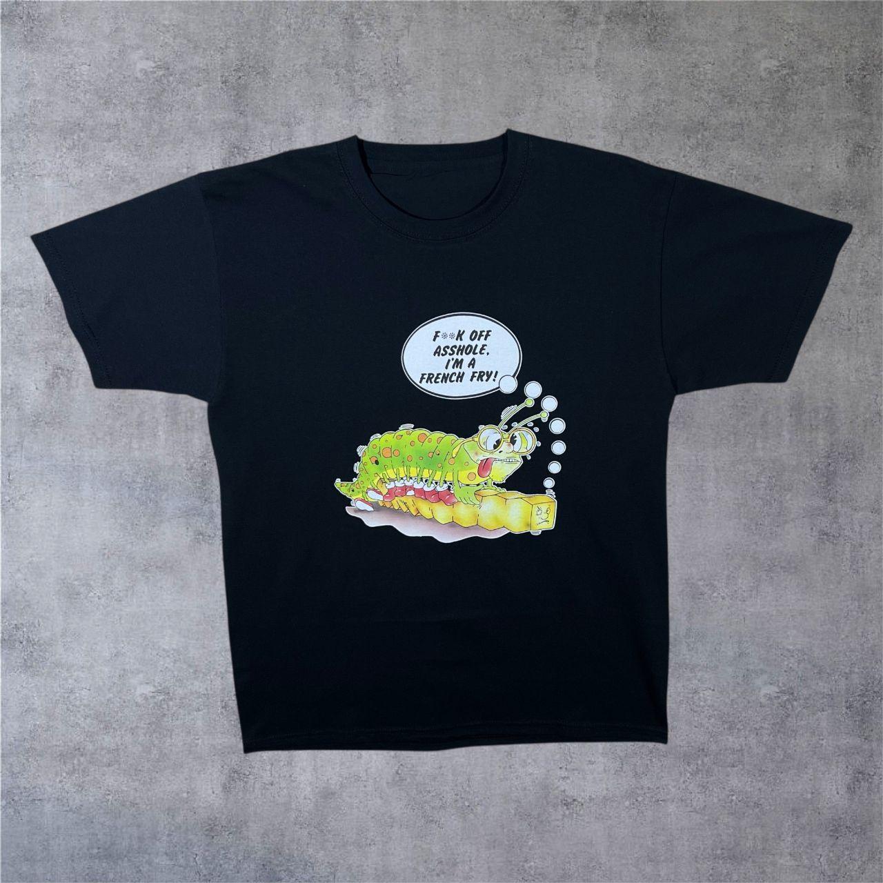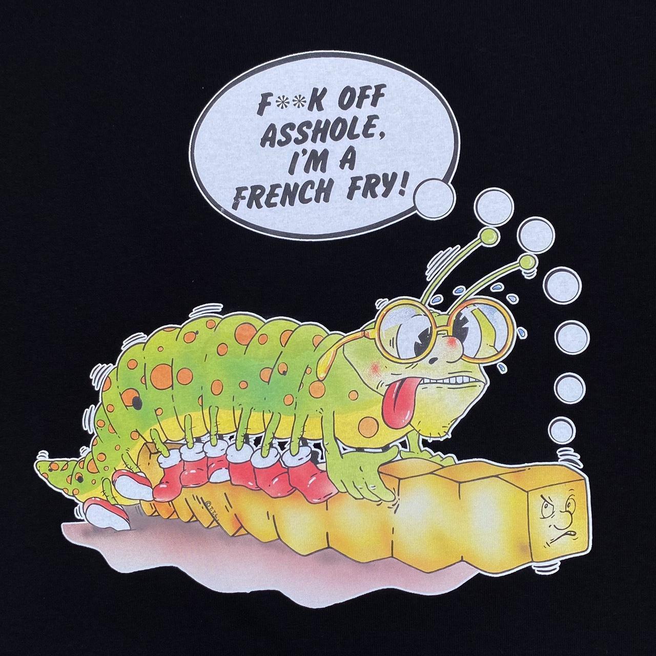I'm A French Fry Caterpillar Cartoon Novelty Spellout Graphic Black T-Shirt