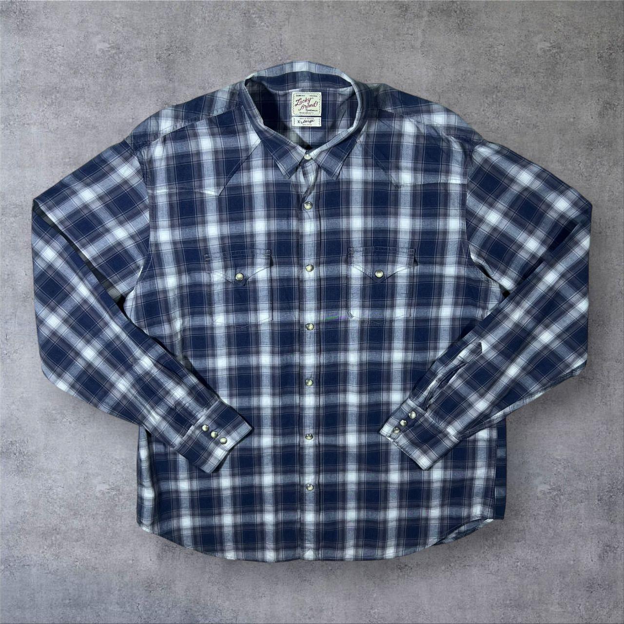 Lucky Brand Cowboy Western Plaid Check Long Sleeve Popper Cotton Shirt