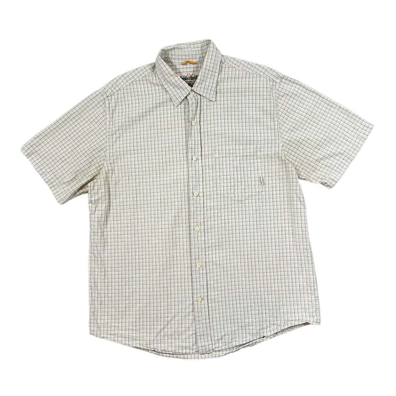 Size: Large (See measurements)Colour: White/Yellow/Brown CheckDetail: 100% cotton material.Condition: Light wear to pit as picturedMeasurements: Pit to Pit: 23"Length: 30"Shoulder to Cuff: 10.5" #SH7