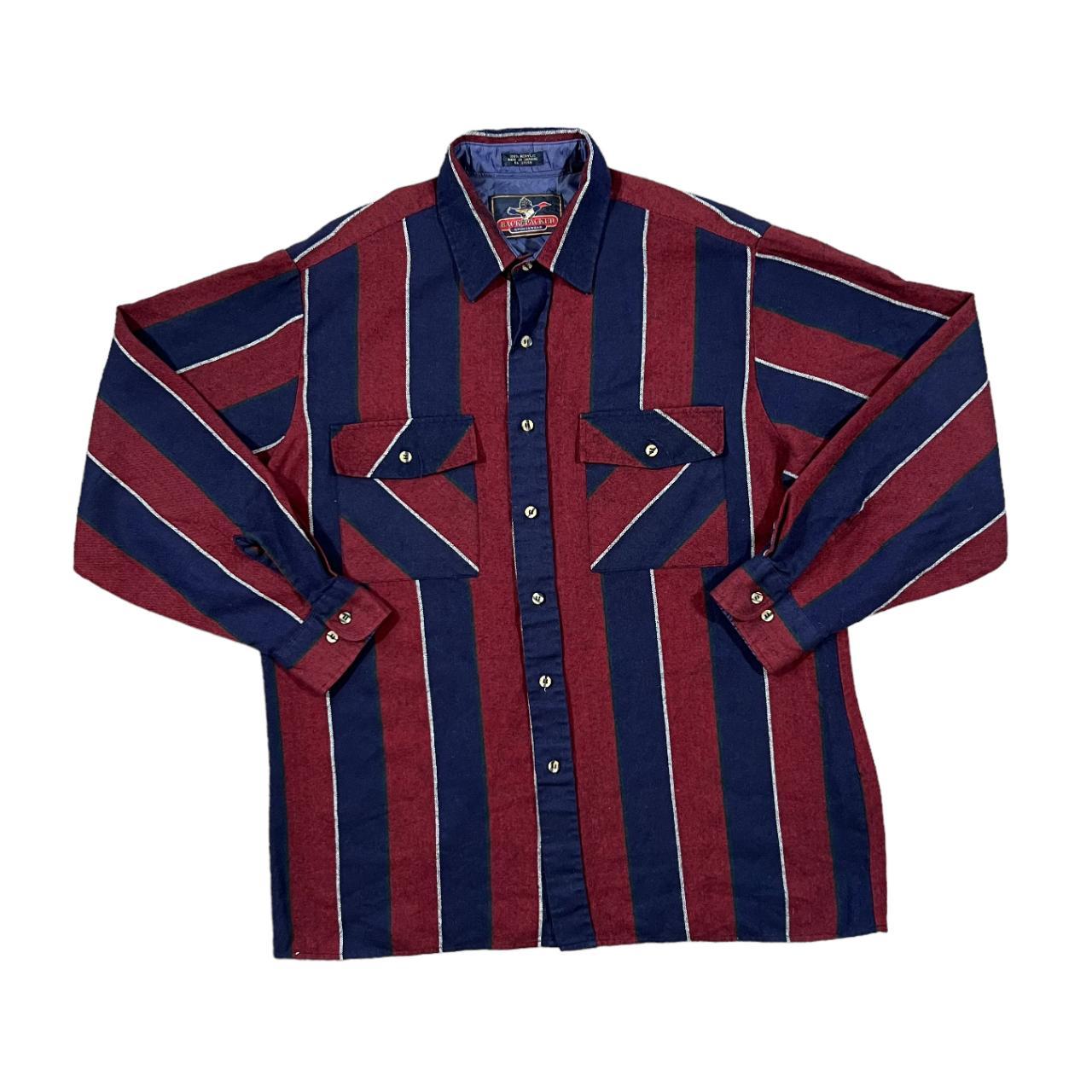 Vintage 80's BACKPACKER SPORTSWEAR Navy Red Striped Acrylic Long Sleeve Flannel ShirtSize: Large (See measurementsColour: Navy Blue/Red StripedDetail: Quality acrylic materialCondition: Light general wear as expectedMeasurements:Pit to Pit: 23.5"Length: 30.5"Shoulder to Cuff: 24"#9892