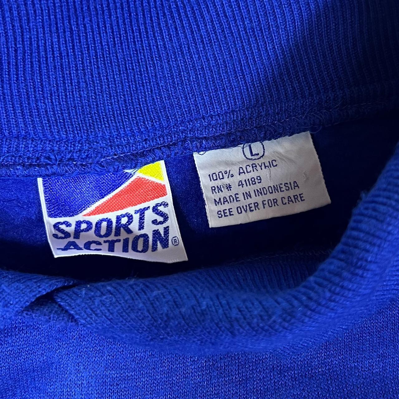 Vintage 80's SPORTS ACTION "Varsity" Spellout Graphic Collared Blue Sweatshirt