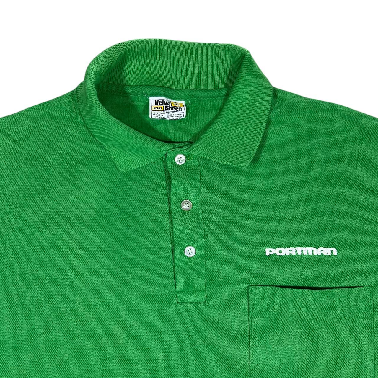 Vintage 80's VELVA SHEEN "Portman" Company Logo Green Short Sleeve Polo Shirt