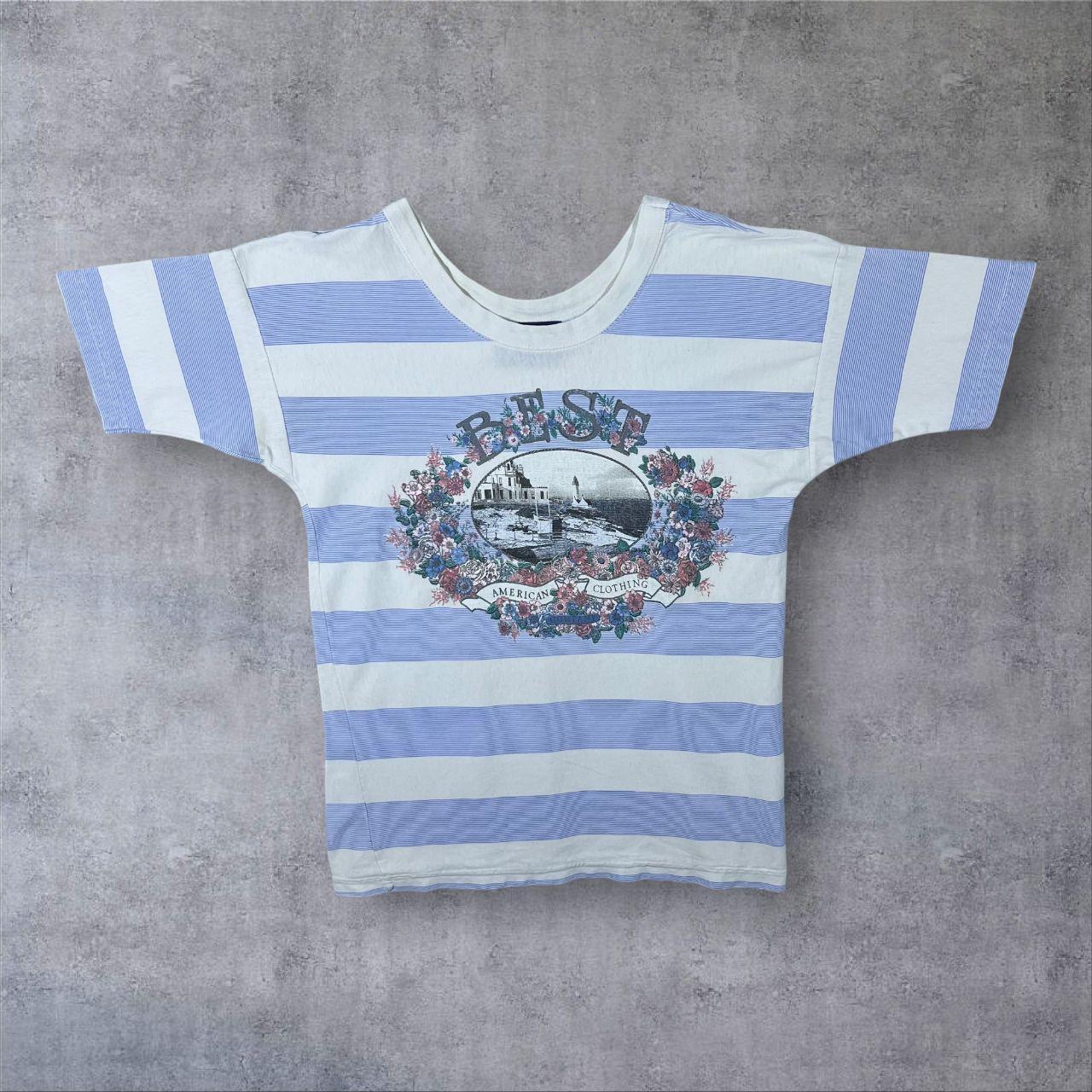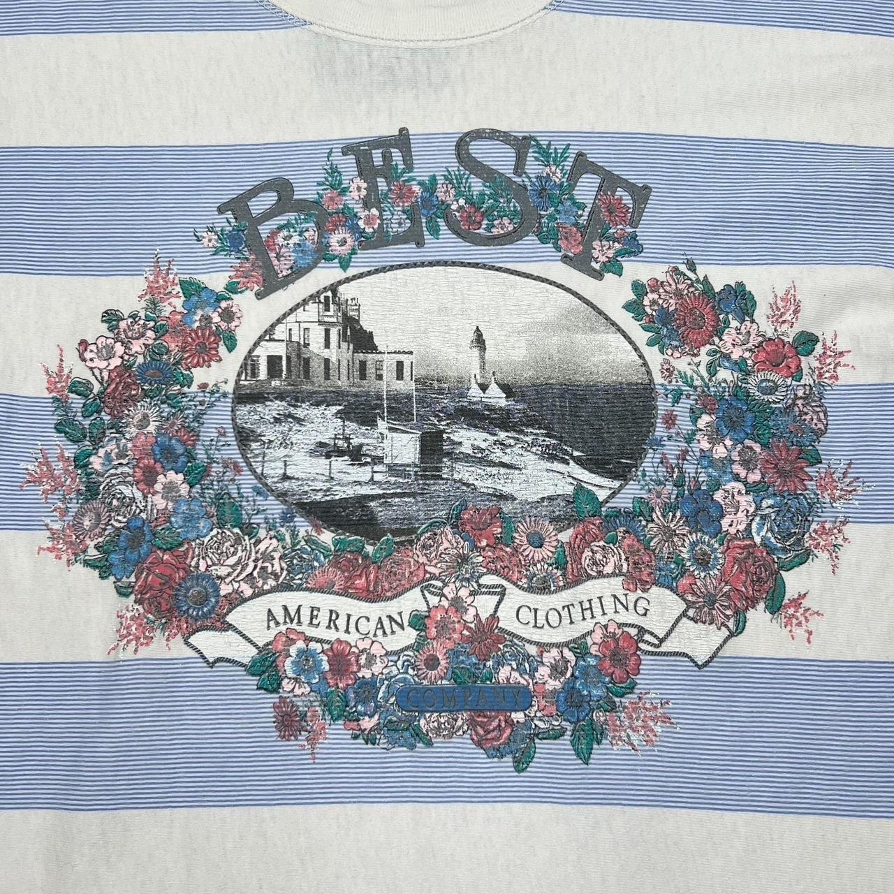 Vintage 90’s Best American Clothing Floral Graphic Striped Scoop Neck T-Shirt