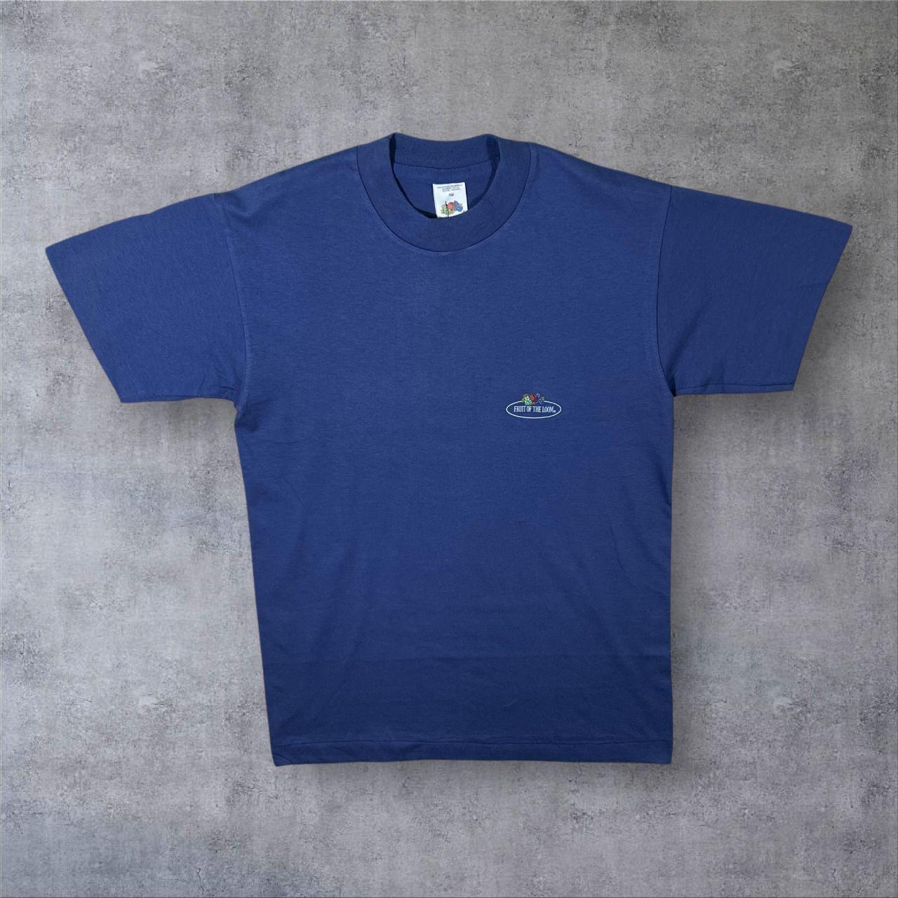 Vintage 90’s Fruit Of The Loom “Classic T-Shirt” Mini Logo Blue Single Stitch T-Shirt