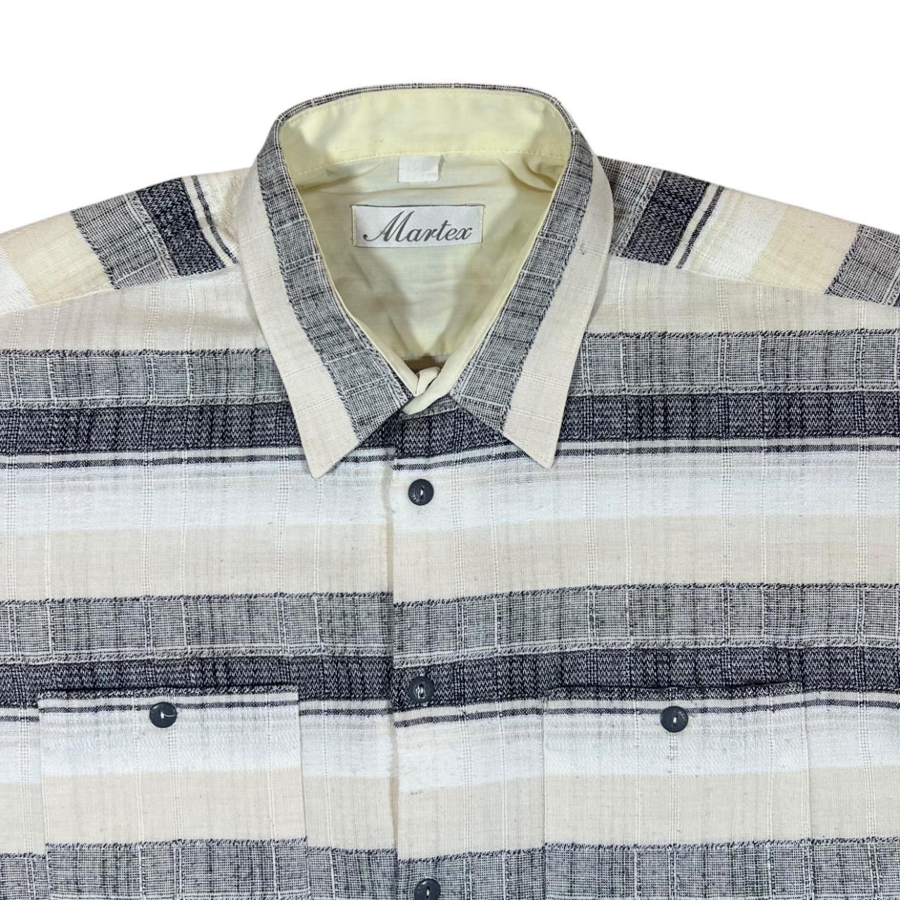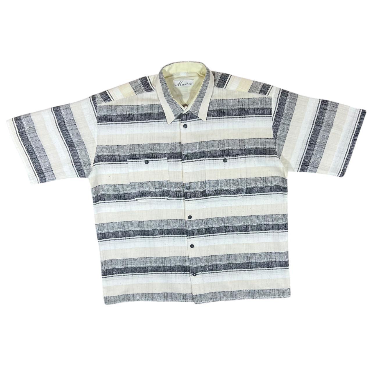Vintage 90's MARTEX Multi Striped Short Sleeve Flannel ShirtSize: XL (See measurements)Colour: Cream/White/Grey/BlackDetail: Quality striped design. Condition: Very minor signs of bobblingMeasurements: Pit to Pit: 25.5"Length: 29"Shoulder to Cuff: 11"#OG86