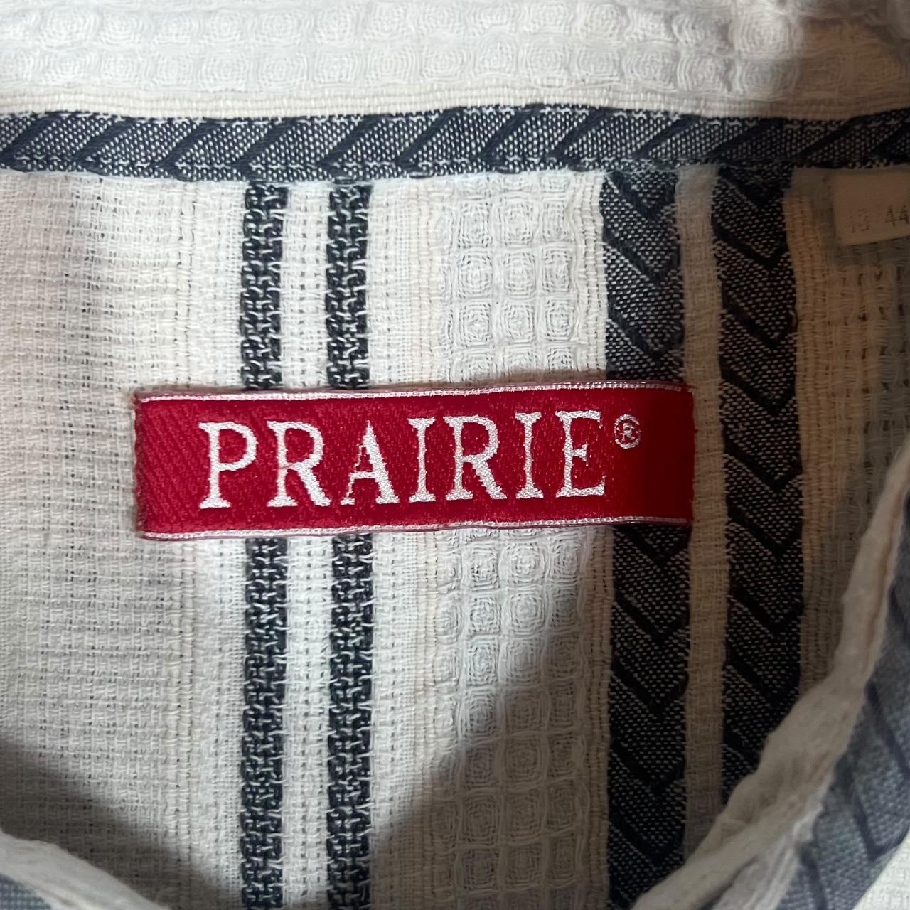 Vintage 90's PRAIRIE Cream Grey Patterned Striped Short Sleeve Flannel Shirt