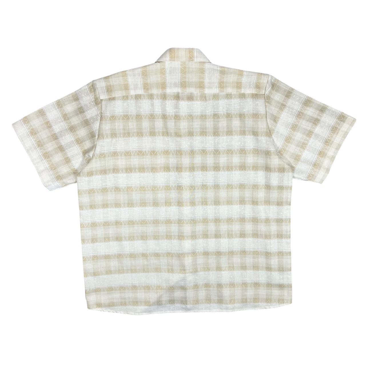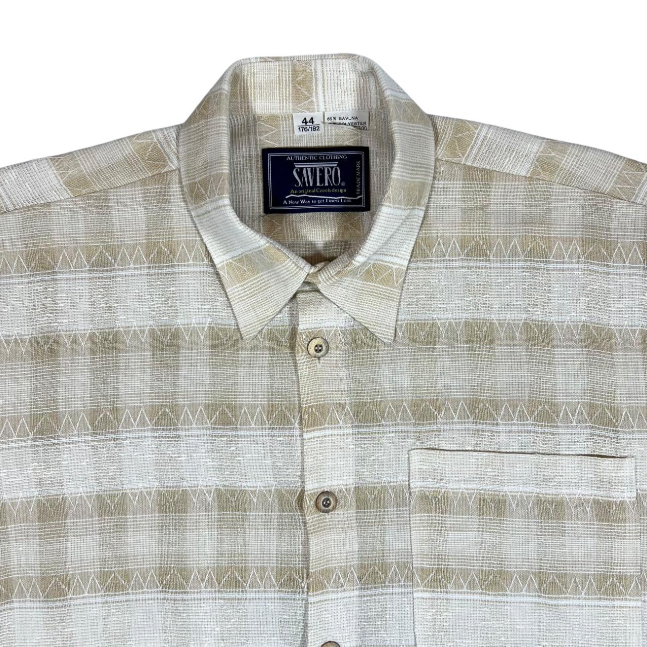 Vintage 90's SAVERO Beige Cream Patterned Striped Short Sleeve Flannel ShirtSize: 44 fits XXL (See measurements)Colour: Cream/Beige StripedDetail: Button fastening.Condition: Light general wear as expectedMeasurements: Pit to Pit: 27"Length: 32"Shoulder to Cuff: 11"#OG40