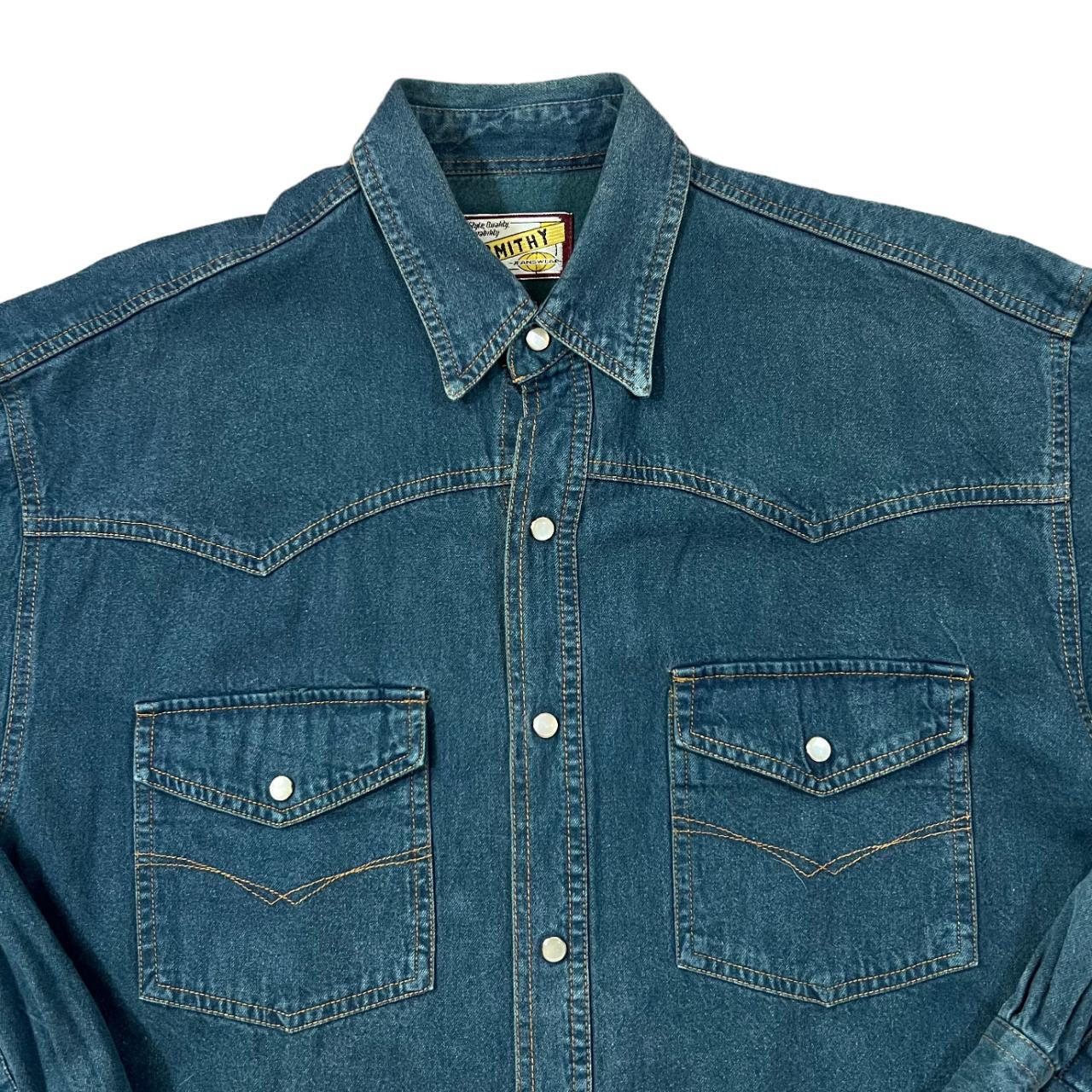 Vintage 90's SMITHY JEANSWEAR Classic Blue Denim Pearl Snap Popper Button Western Long Sleeve Denim Shirt