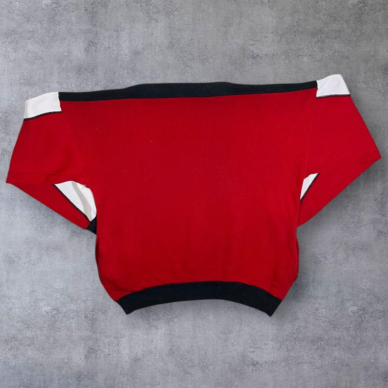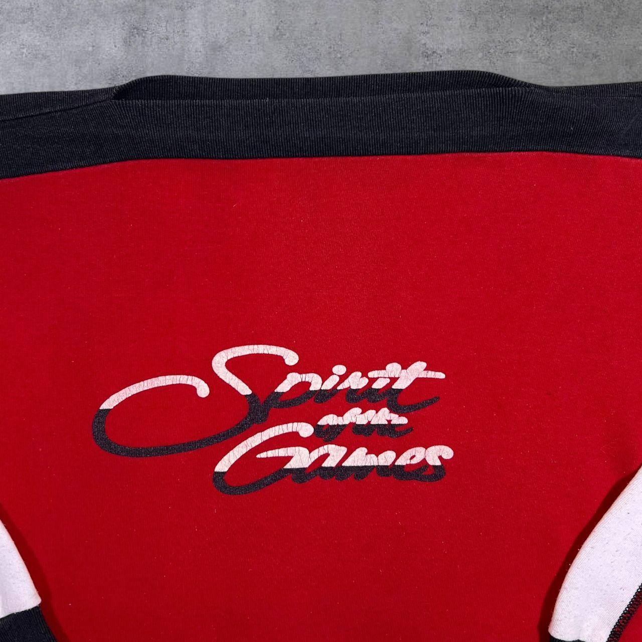 Vintage 90's Spirit Of The Games Spellout Graphic Colour Block Boat Neck Sweatshirt