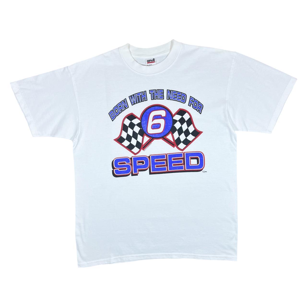 Vintage Anvil (1996) BORN WITH THE NEED FOR SPEED Racing Novelty Graphic T-Shirt