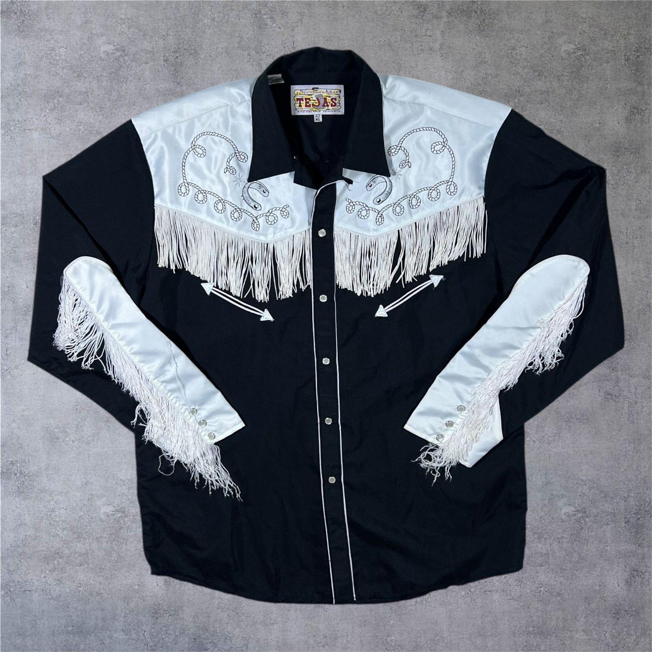 Vintage Autentica Vaquera Tejas Western Cowboy Shirt Fringe Satin Yoke XL 42
