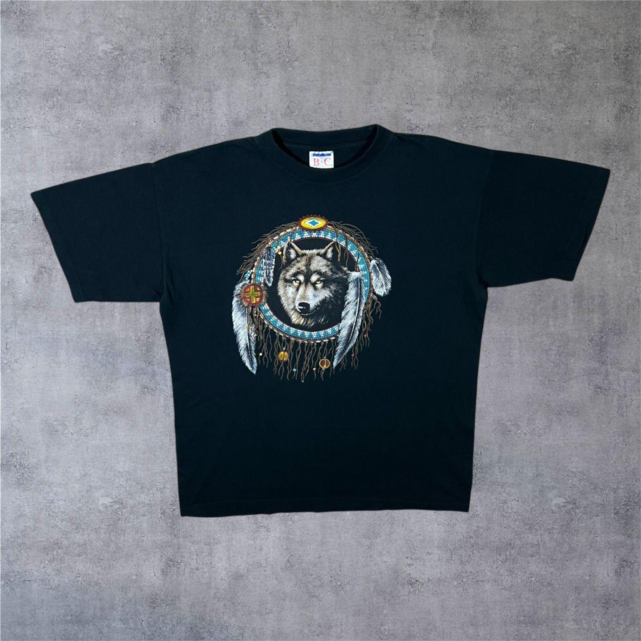 Vintage B&C Wolf Native American Dream Catcher Graphic Black T-Shirt