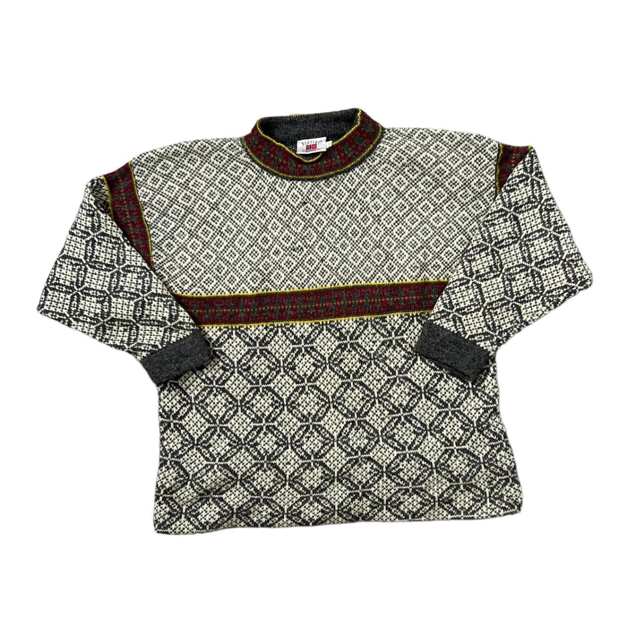 Vintage BOUVIAC NORWAY Nordic Fair Isle Patterned Knit Sweater Jumper
