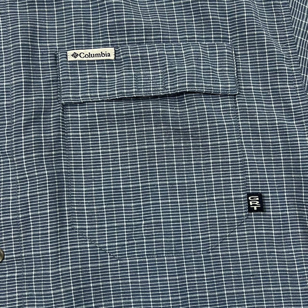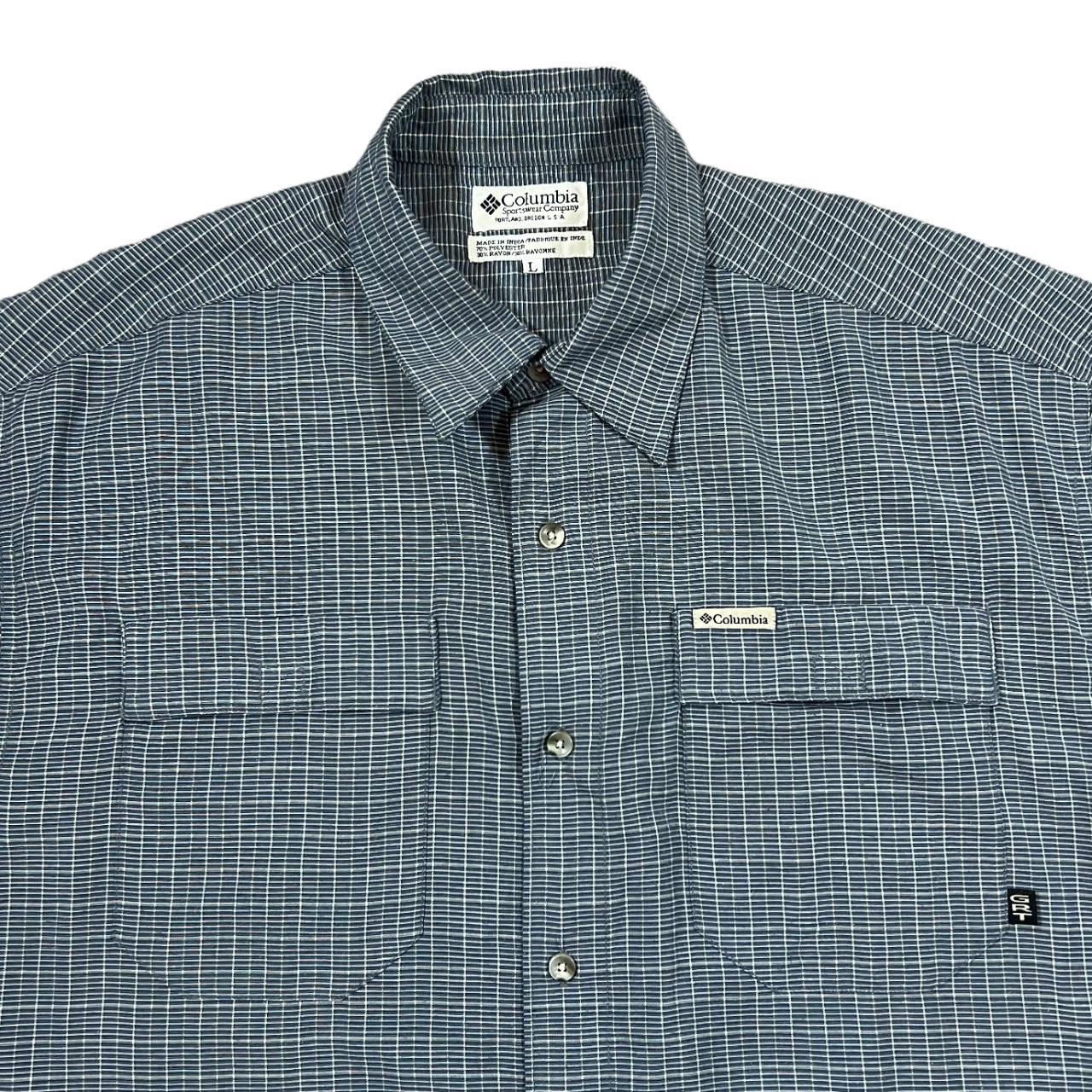 Size: Large would fit XL (See measurements)Colour: Blue CheckDetail: 30% Rayon, 70% Polyester materialCondition: Light general wear as expectedMeasurements: Pit to Pit: 25"Length: 32.5"Shoulder to Cuff: 11" #SH53