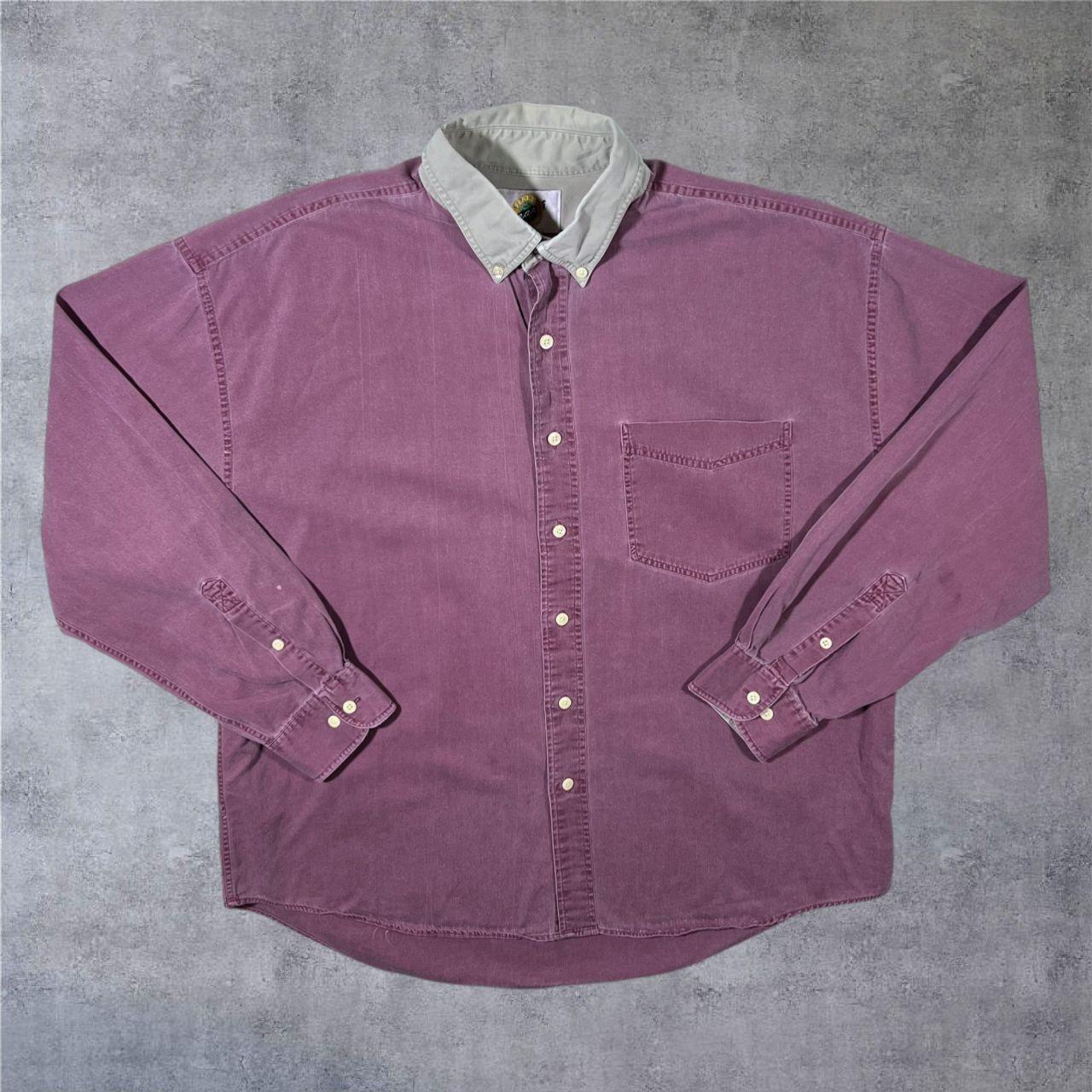 Vintage Field Gear Washed Burgundy Red Contrast Collar Button-Down Long Sleeve Shirt