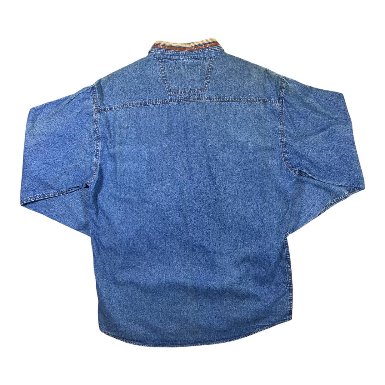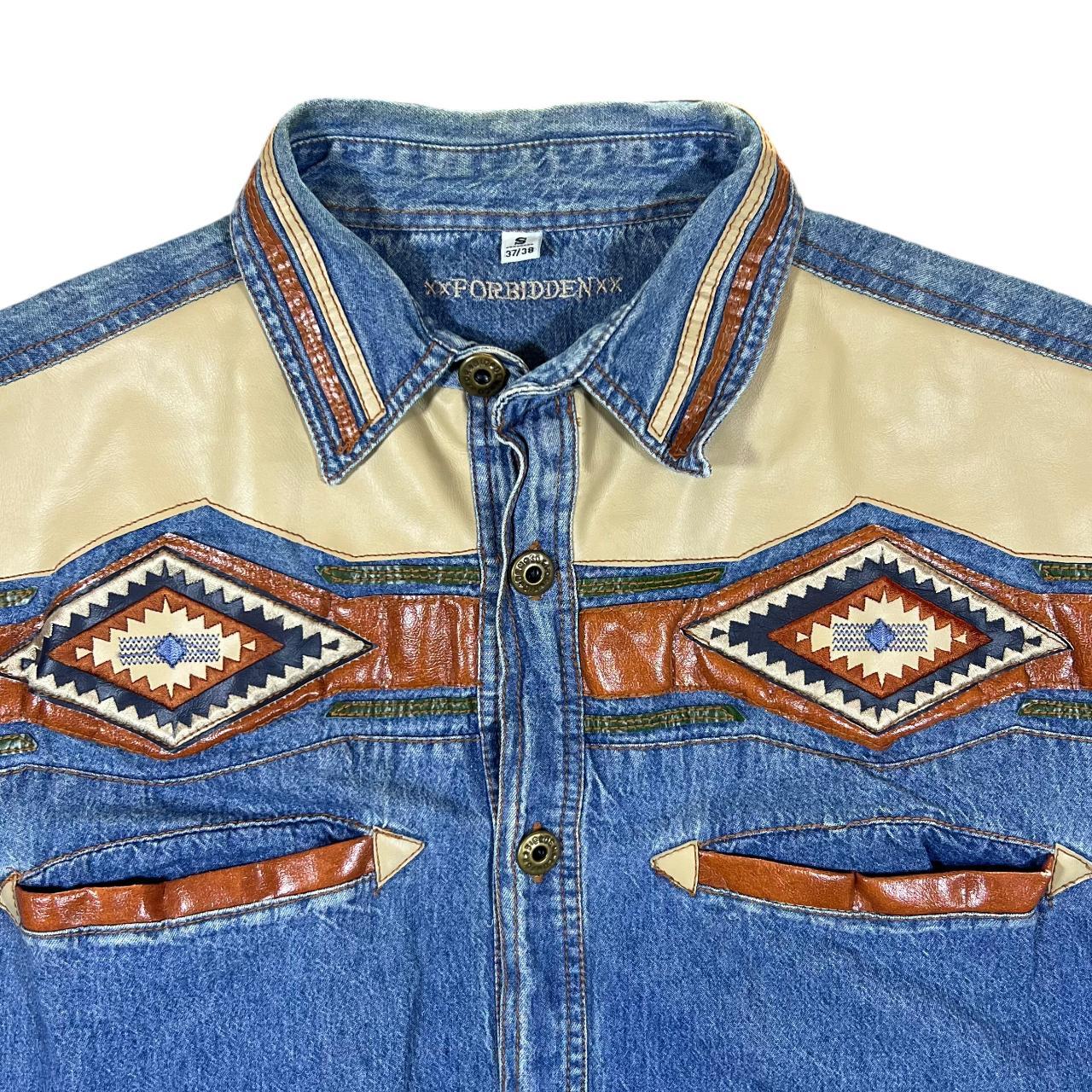 Vintage FORBIDDEN Cowboy Western Leather Panel Denim Long Sleeve Shirt