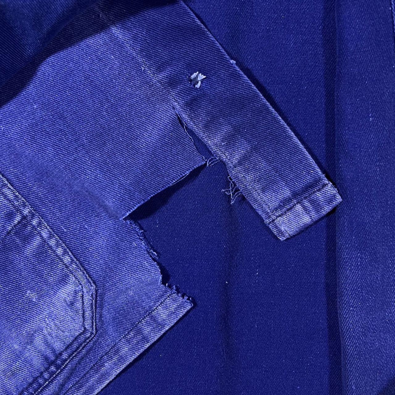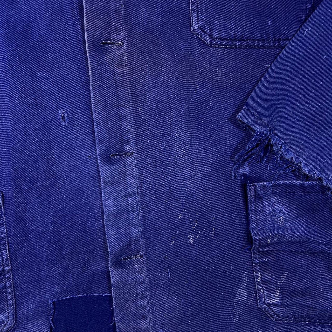 Vintage French Chore Worker Style Faded Blue Heavily Distressed Cotton Jacket