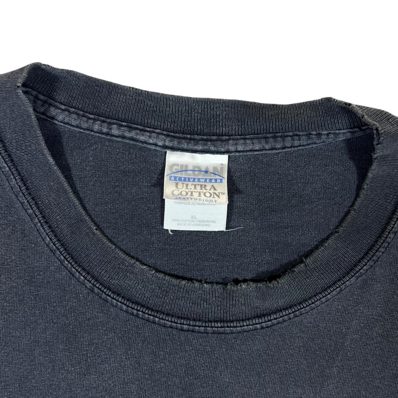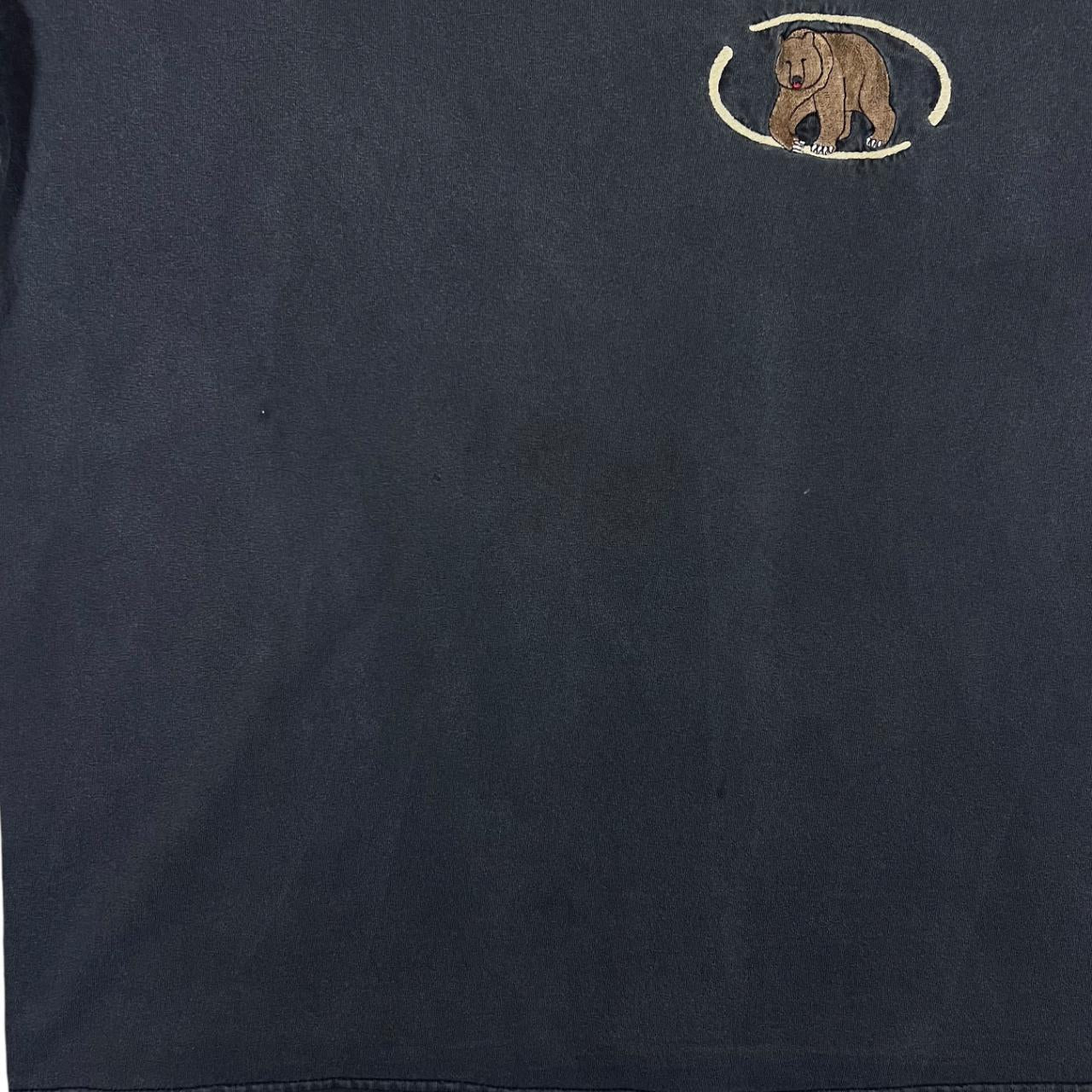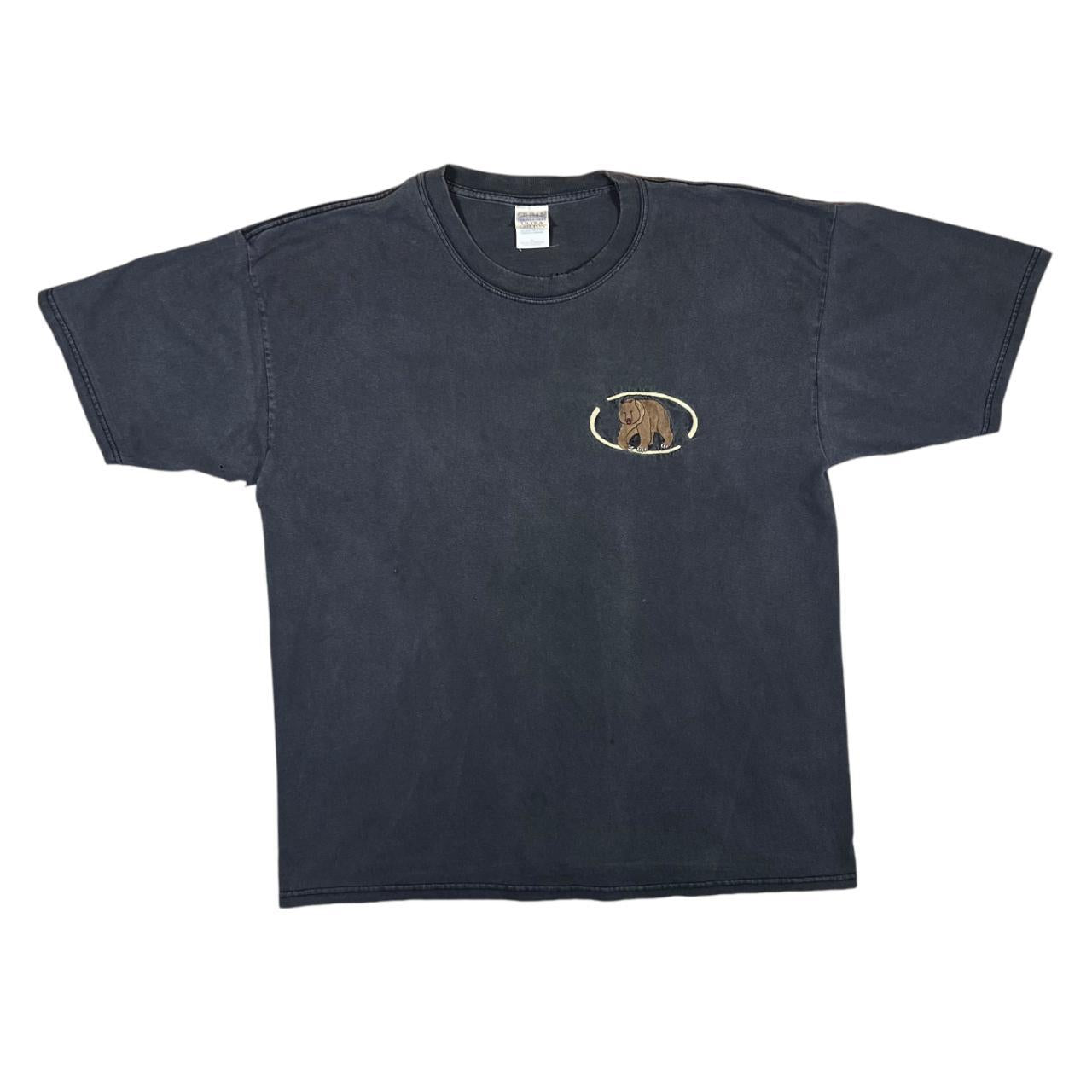 Vintage GILDAN Embroidered Bear Animal Wildlife Distressed Faded Black Short Sleeve T-Shirt