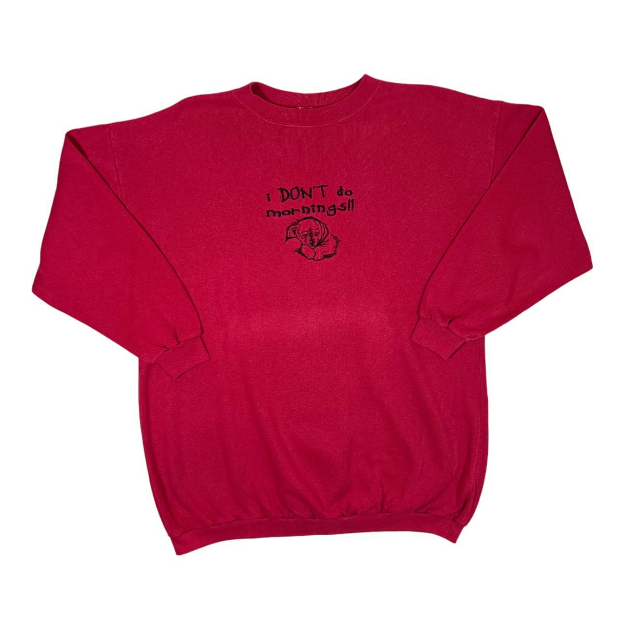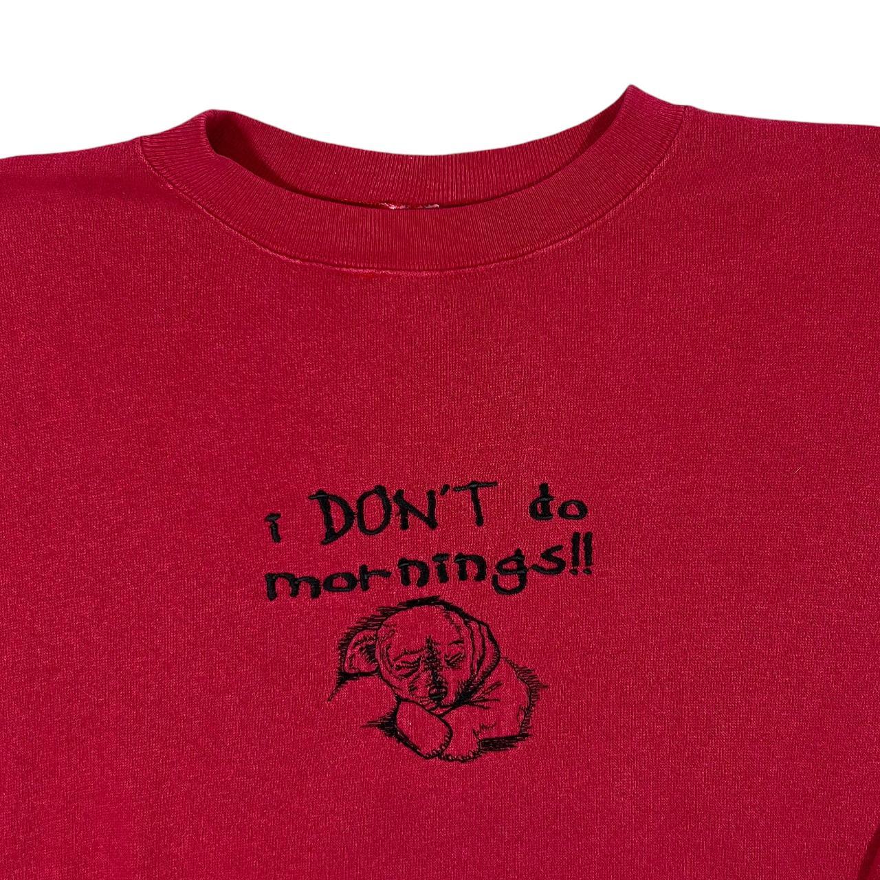 Vintage Gopher Sport I DON'T DO MORNINGS Embroidered Puppy Dog Spellout Sweatshirt