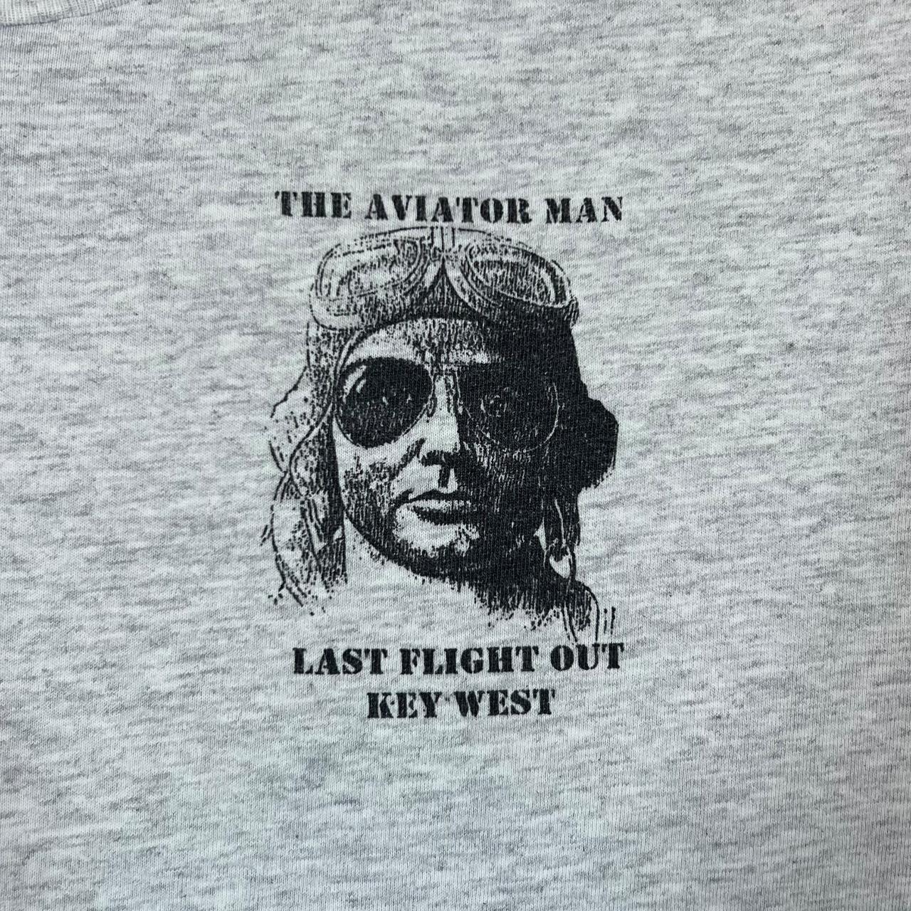 Vintage Hanes THE AVIATOR MAN "Key West" Souvenir Spellout Graphic Grey T-Shirt