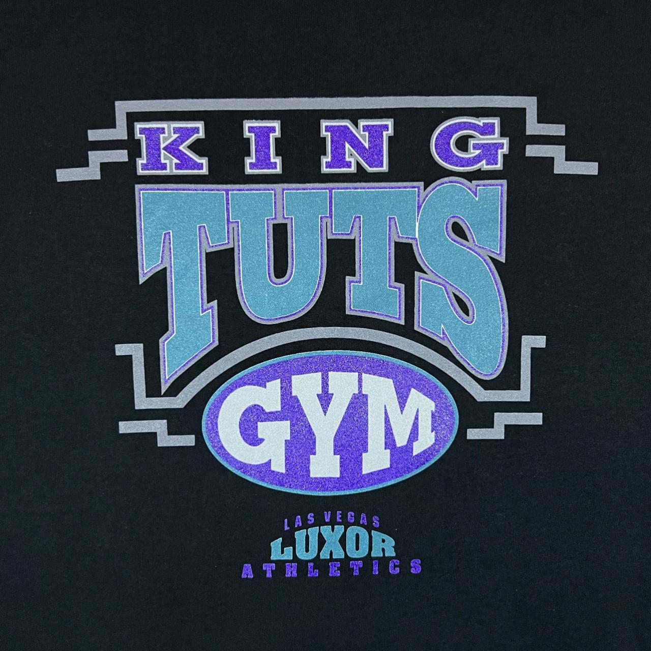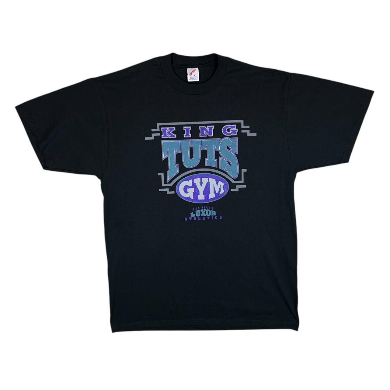 Vintage Jerzees KING TUTS GYM Luxor Las Vegas Souvenir Spellout Graphic T-ShirtSize: XL (See measurements)Colour: BlackDetail: Graphic souvenir spellout print to frontCondition: Light general wear as expected.Measurements: Pit to Pit: 23"Length: 32"Shoulder to Cuff: 10" #12462
