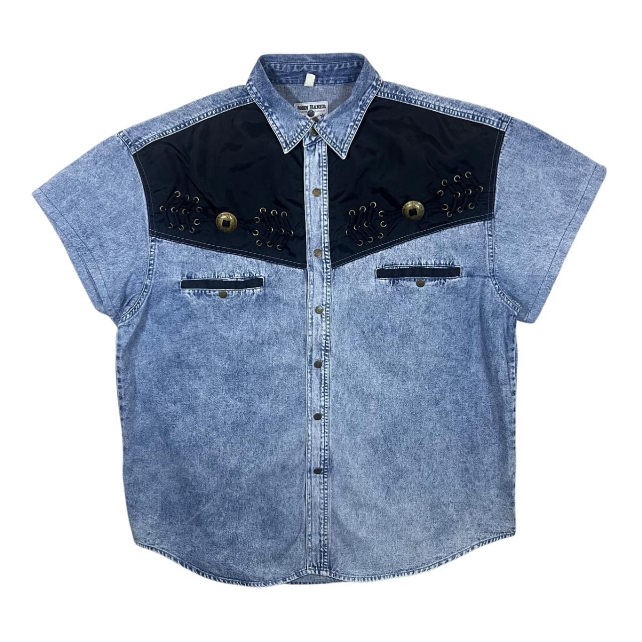 Vintage John Baner Cowboy Western Acid Wash Blue Denim Short Sleeve Popper Shirt