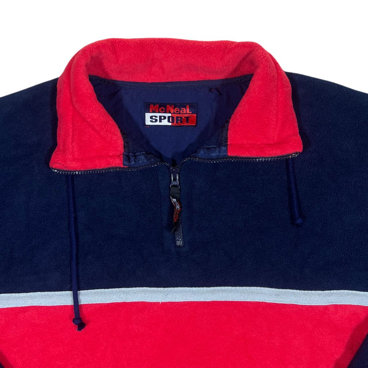Vintage MCNEAL SPORT Colour Block Navy Blue Red 1/4 Zip Fleece Sweatshirt