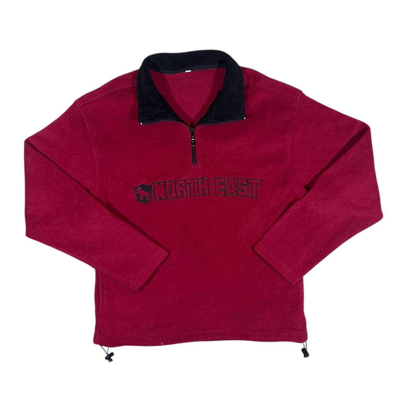 Vintage NORTH EAST Embroidered Spellout Red 1/4 Zip Pullover Fleece Sweatshirt