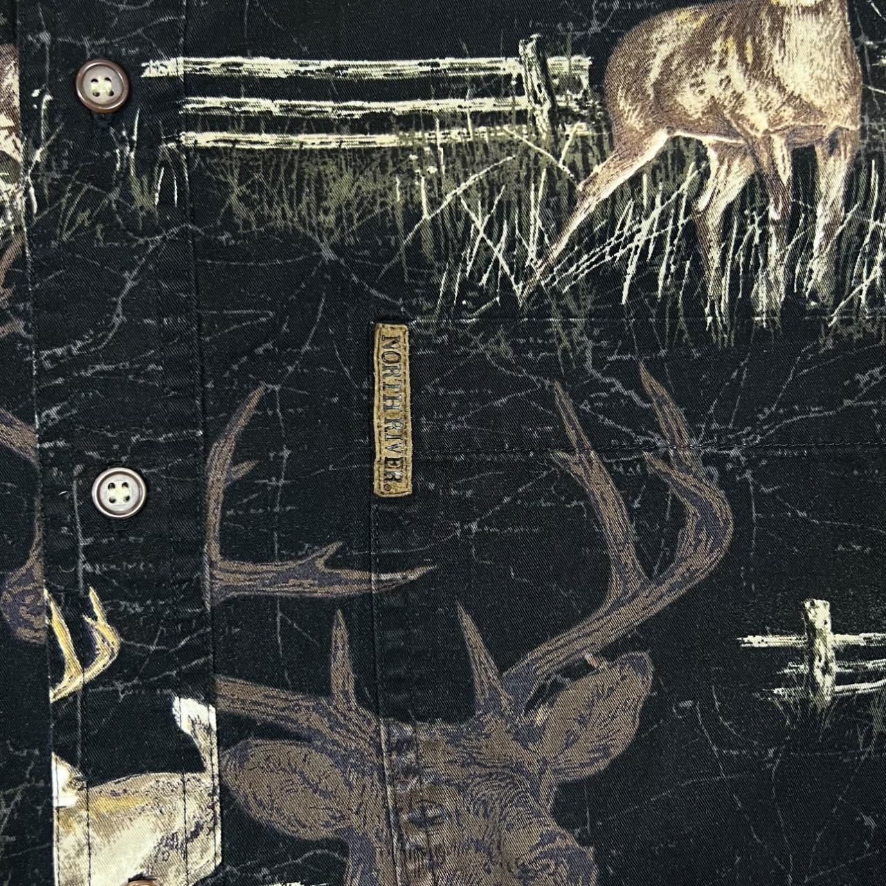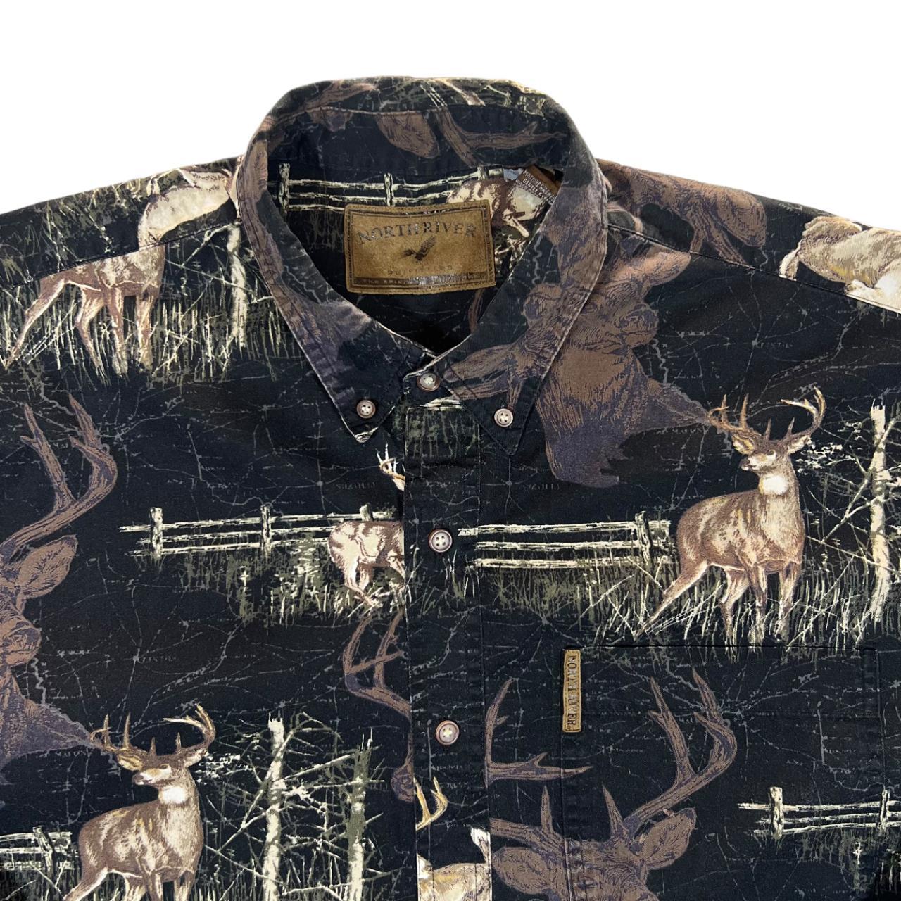 Vintage NORTH RIVER Deer Buck Nature All-Over Print Long Sleeve Button-Up Cotton Shirt