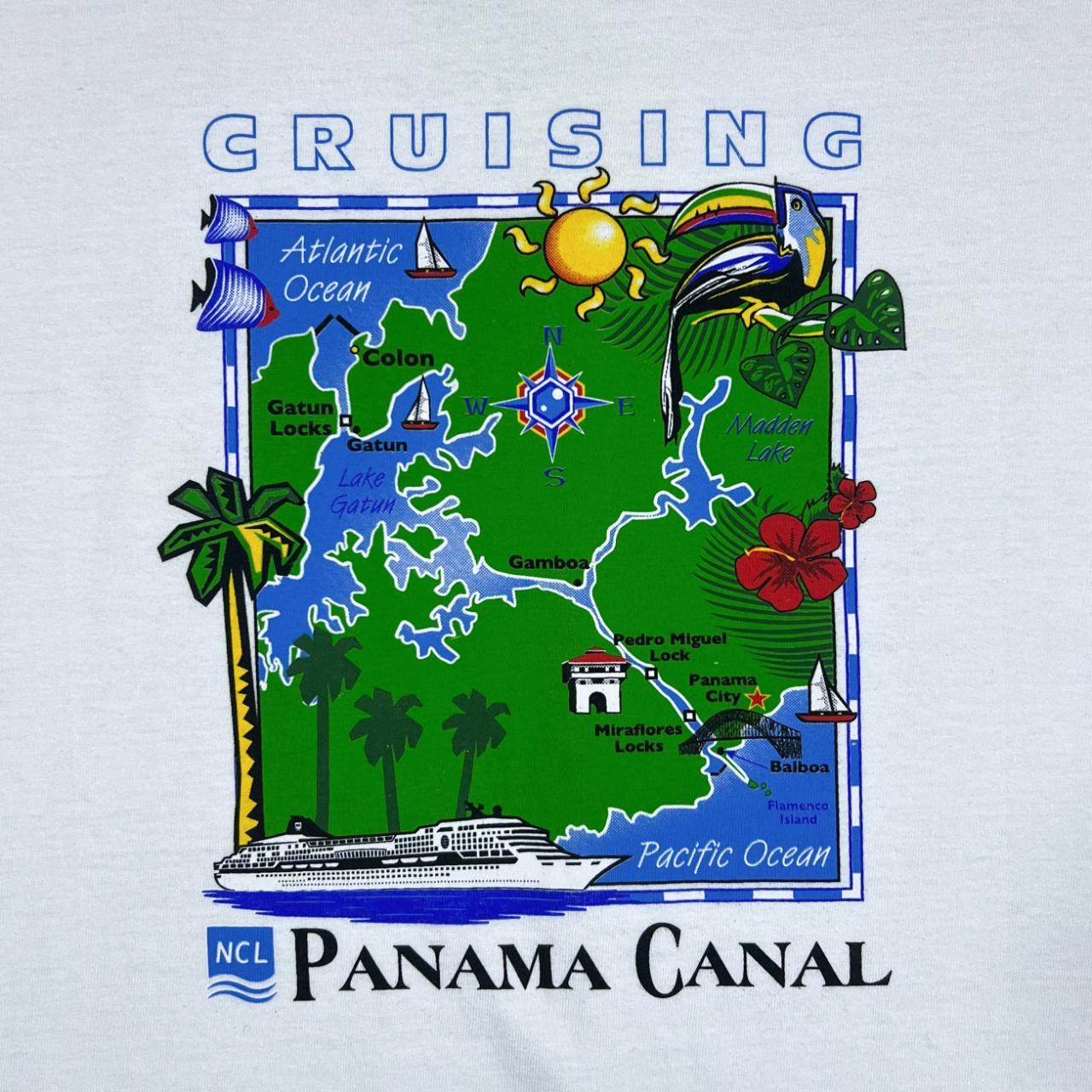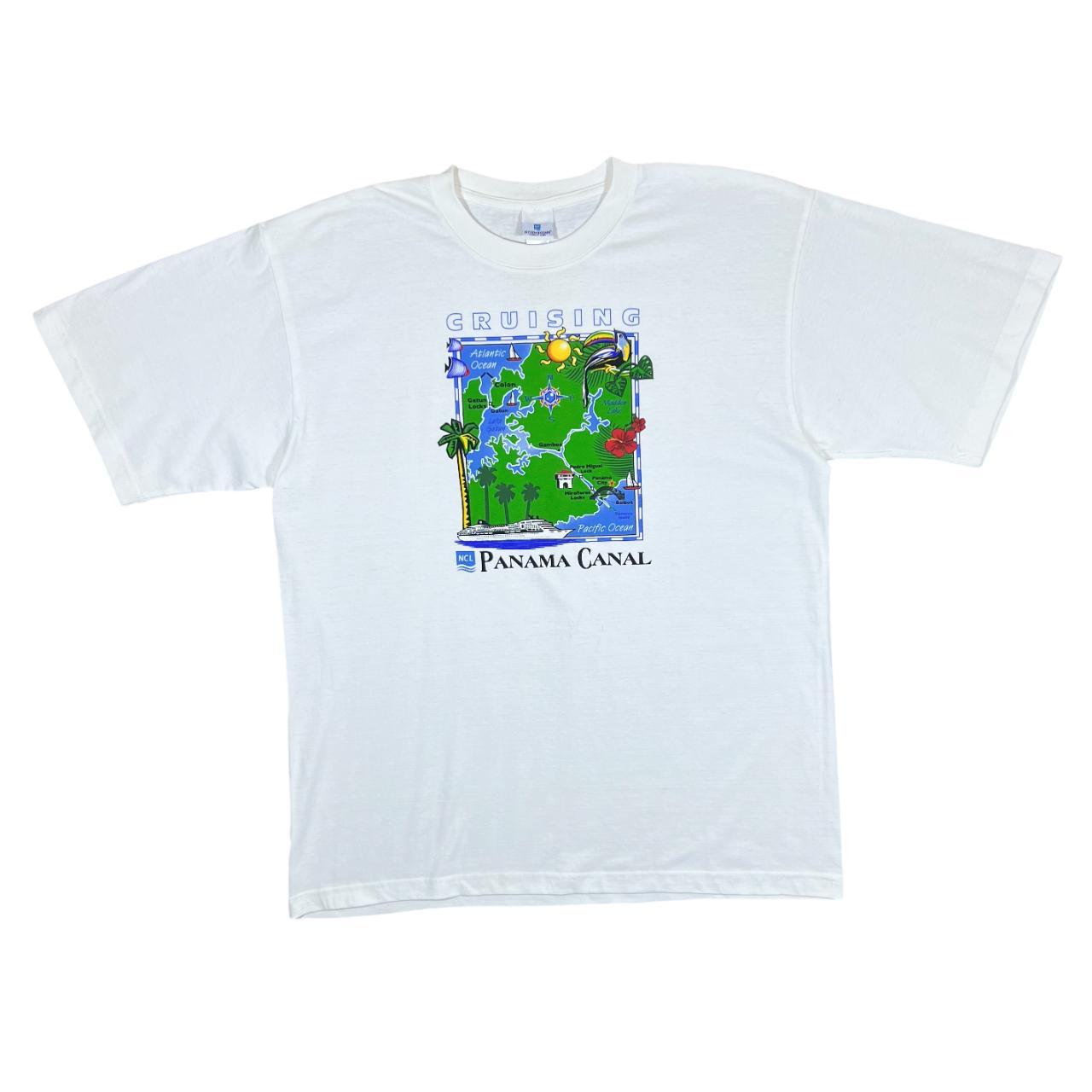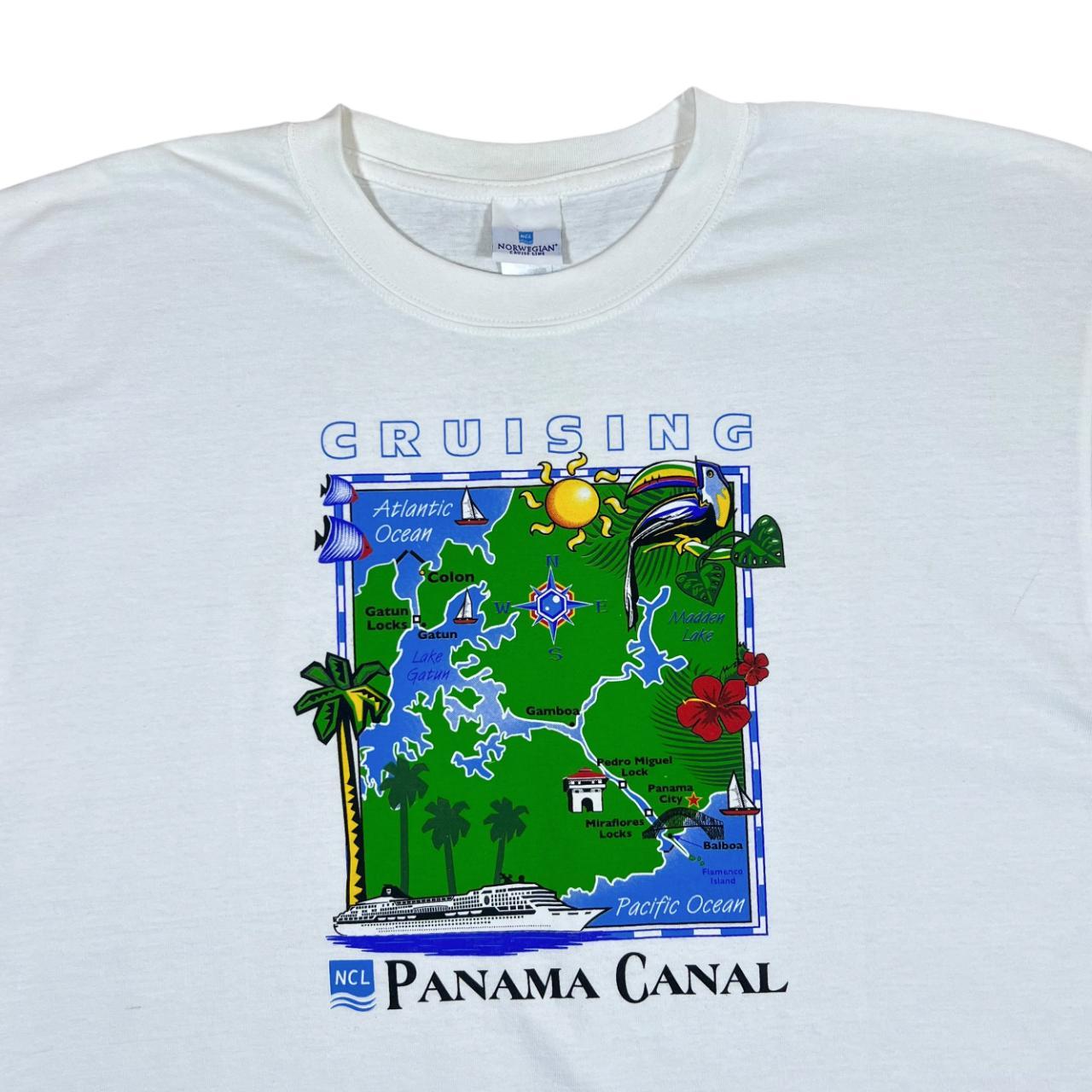 Vintage Norweigian Cruise Line PANAMA CANAL Souvenir Map Graphic White T-Shirt