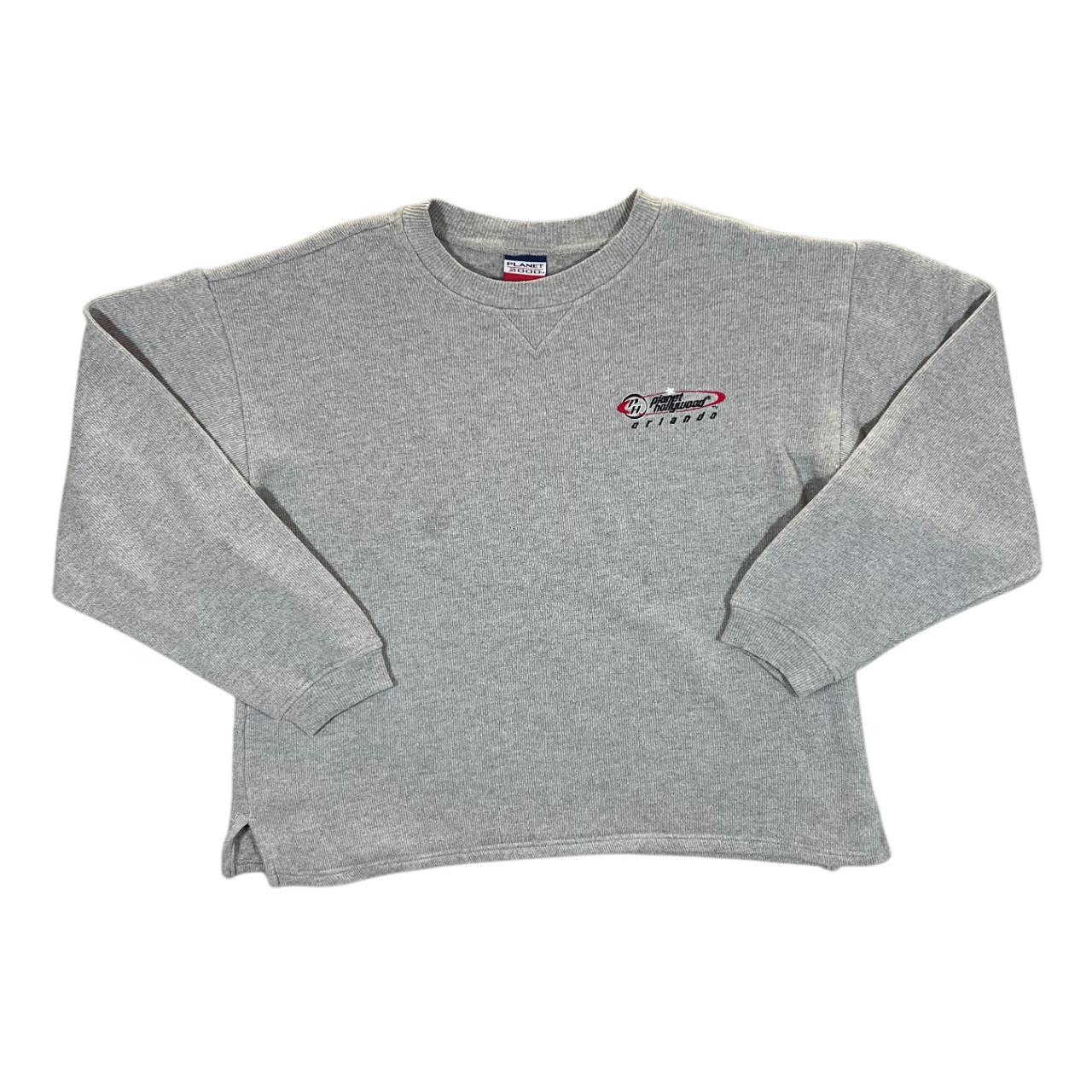 Vintage PLANET HOLLYWOOD "Orlando" Embroidered Souvenir Logo Boxy Grey Sweatshirt