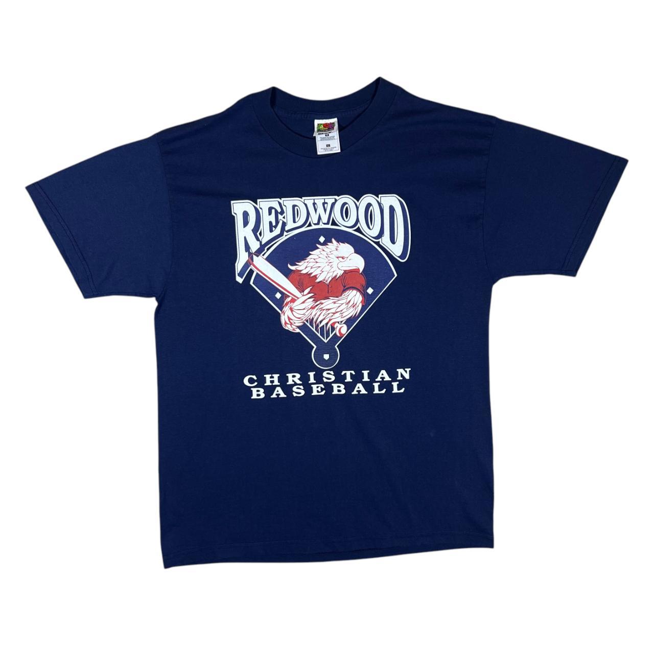 Vintage REDWOOD CHRISTIAN BASEBALL College Sports Graphic Navy Blue T-Shirt