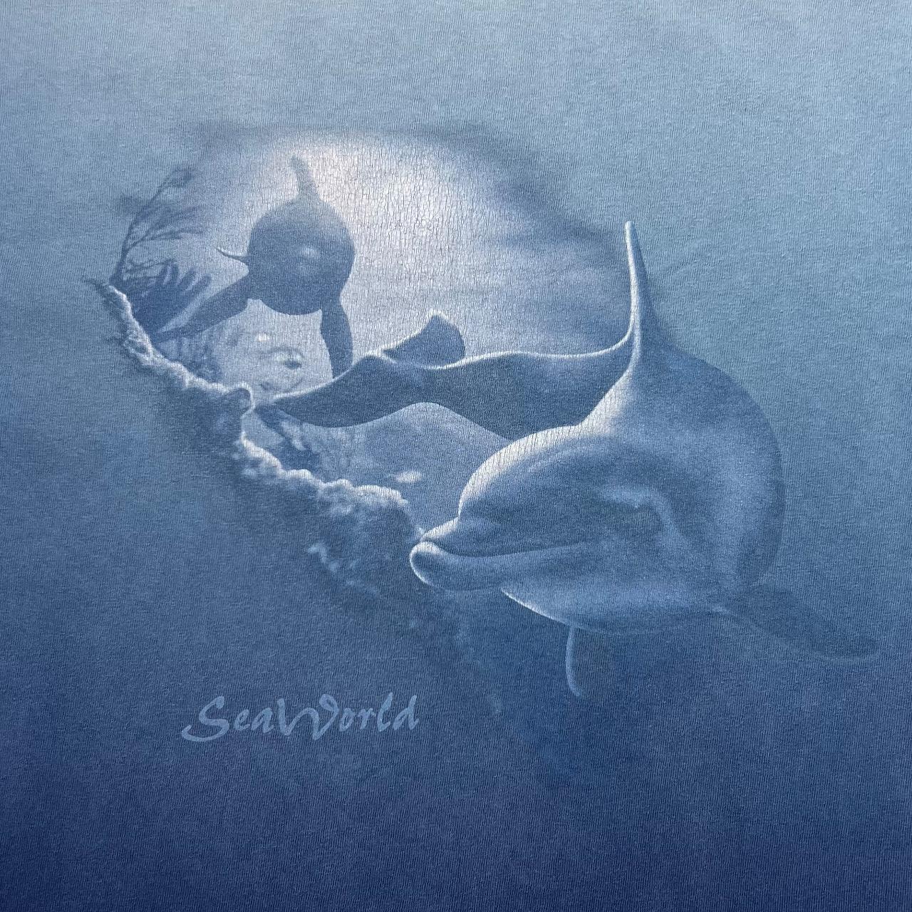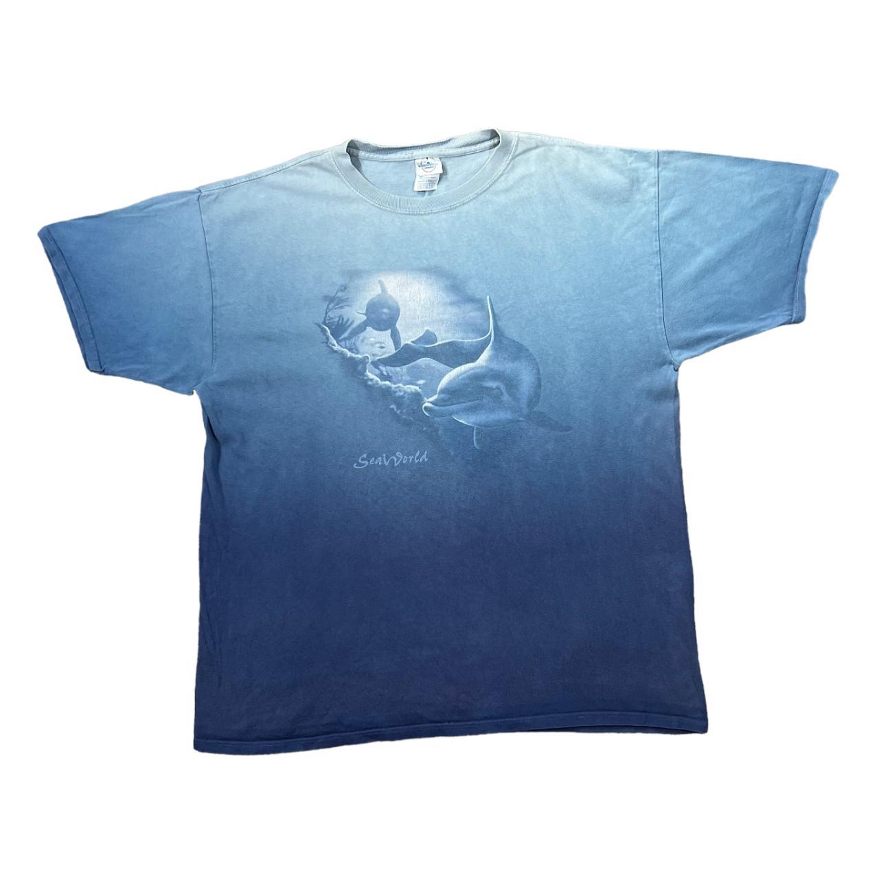 Vintage SEA WORLD Dolphin Marine Wildlife Souvenir Graphic Blue Gradient T-Shirt Size: XL (See measurements)Colour: Blue GradientDetail: Graphic souvenir spellout print to frontCondition: Light general wear as expected. Measurements:Pit to Pit: 25.5”Length: 31”Shoulder to Cuff: 9.5”#9815