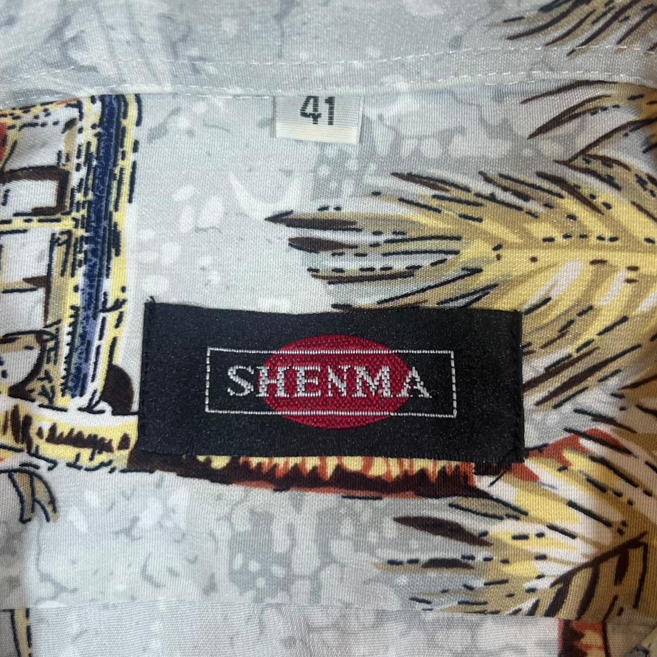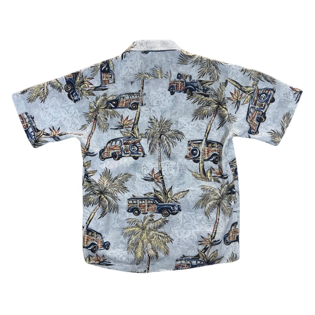 Vintage SHENMA Hawaiian Tropical Palm Car Patterned Short Sleeve Polyester Shirt