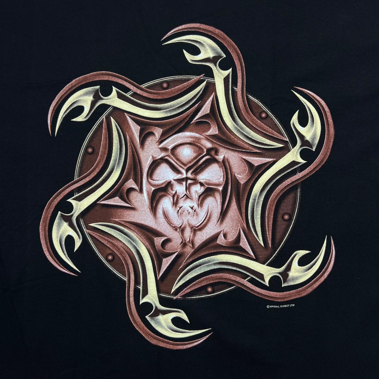 Vintage SPIRAL DIRECT Gothic Tribal Biker Motif Graphic Short Sleeve T-ShirtSize: XL (See measurements)Colour: BlackDetail: Graphic gothic tribal print to front and backCondition: Light general wear as expectedMeasurements: Pit to Pit: 24.5"Length: 31"Shoulder to Cuff: 9"#10143