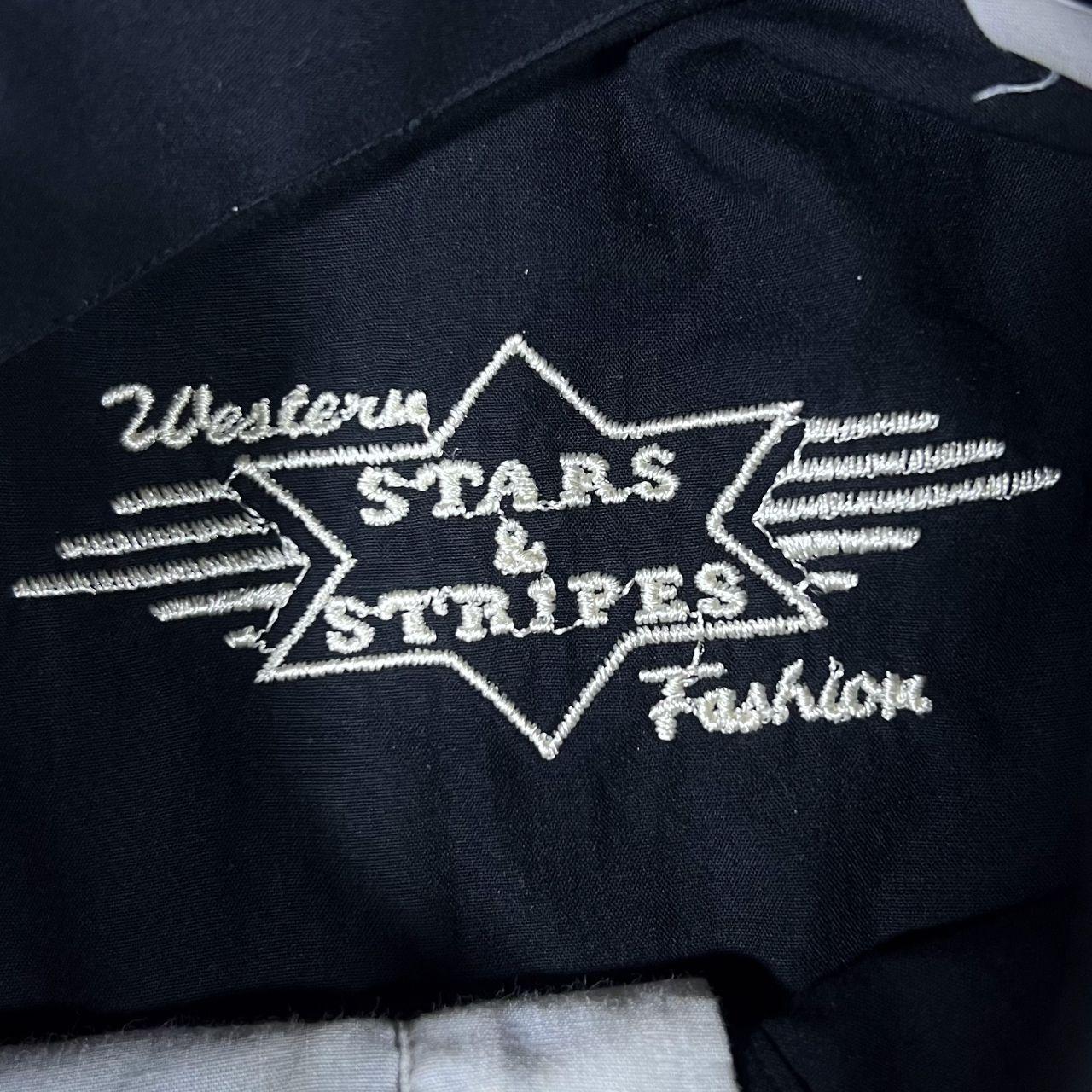 Vintage Stars & Stripes Cowboy Western Black Cotton Long Sleeve Popper Shirt