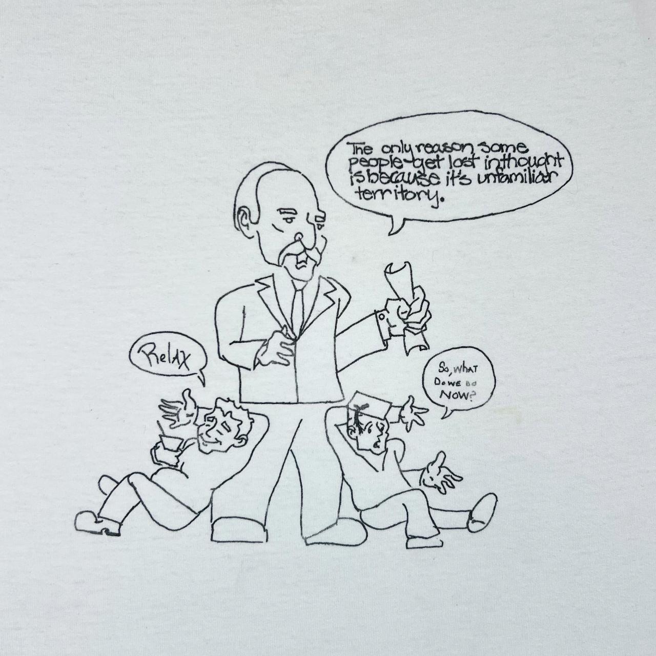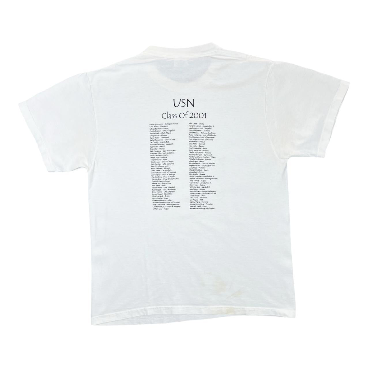 Vintage USN CLASS OF 2001 "Unfamiliar Territory" Cartoon Souvenir Graphic White T-Shirt