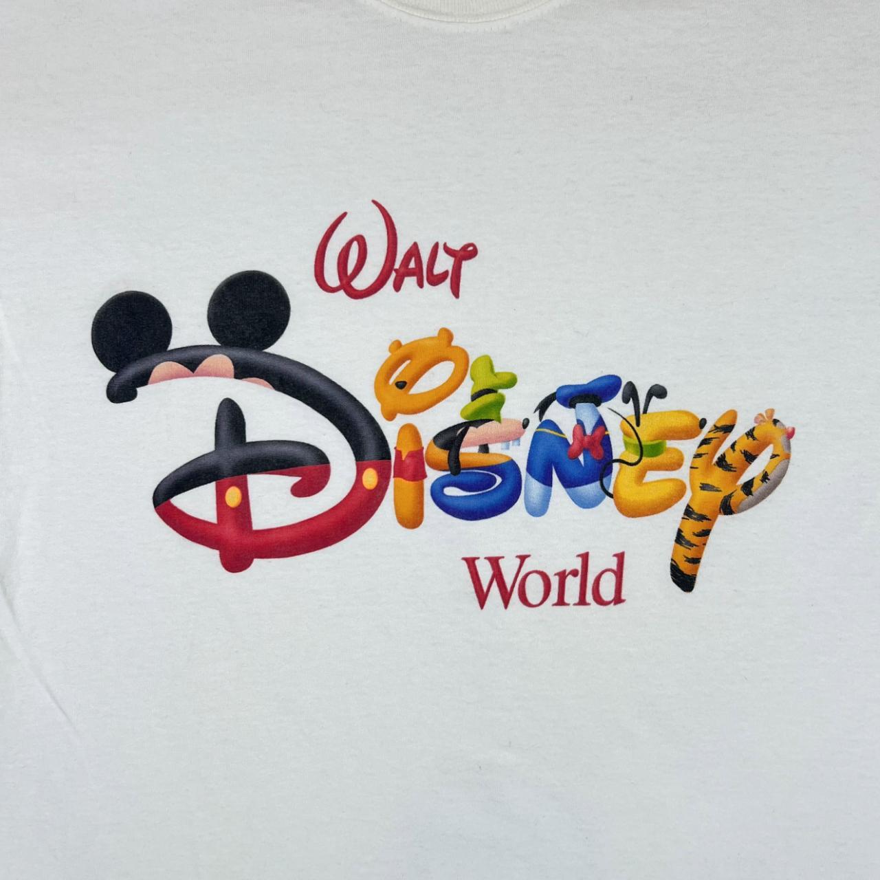 Vintage WALT DISNEY WORLD Character Logo Spellout Souvenir Graphic White T-Shirt