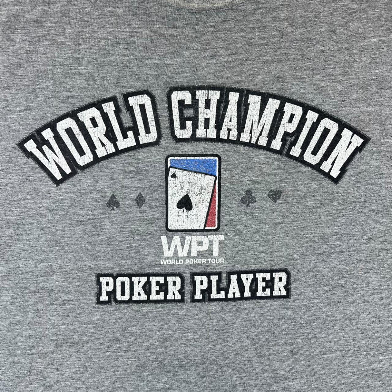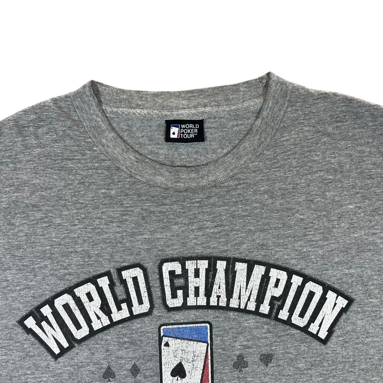 Vintage WORLD POKER TOUR "World Champion" Souvenir Spellout Graphic Grey T-Shirt