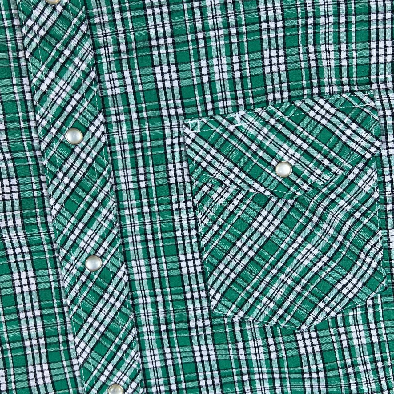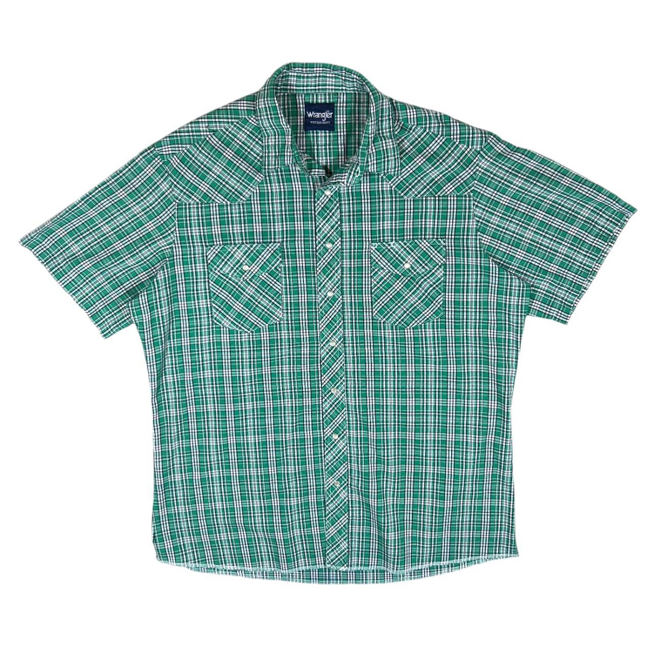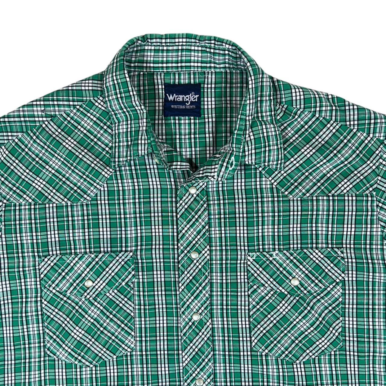 Vintage WRANGLER "Western Shirts" Green Plaid Check Cowboy Popper Short Sleeve Shirt