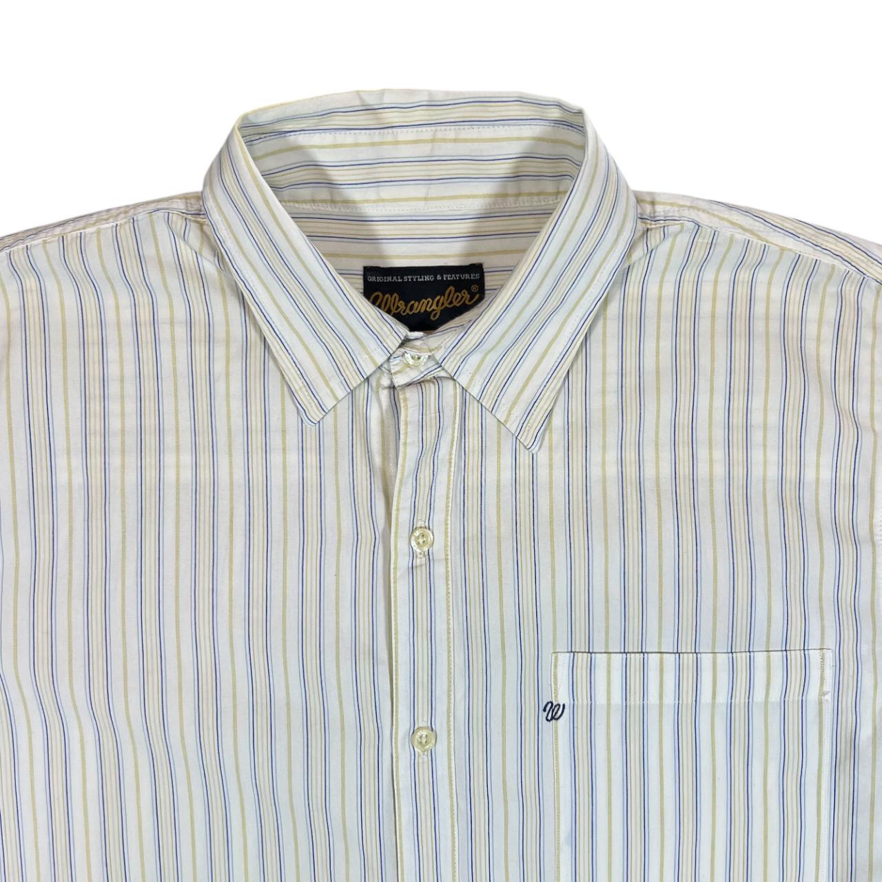 Vintage WRANGLER White Yellow Blue Multi Striped Short Sleeve Cotton Shirt