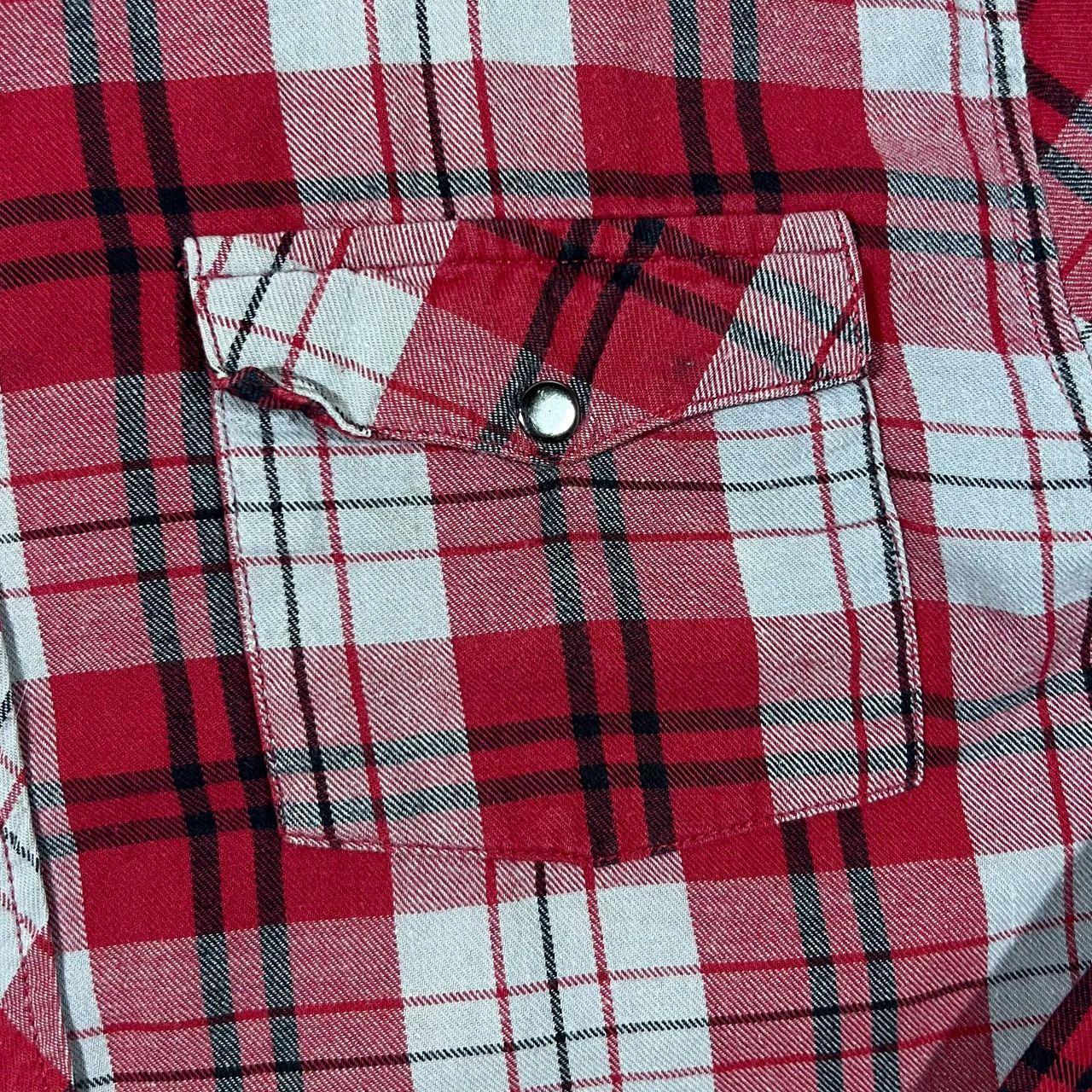 Size: Large (See measurements)Colour: Red/Grey/Black CheckDetail: 100% cotton material. Made in Bangladesh.Condition: Light general wear as expected.